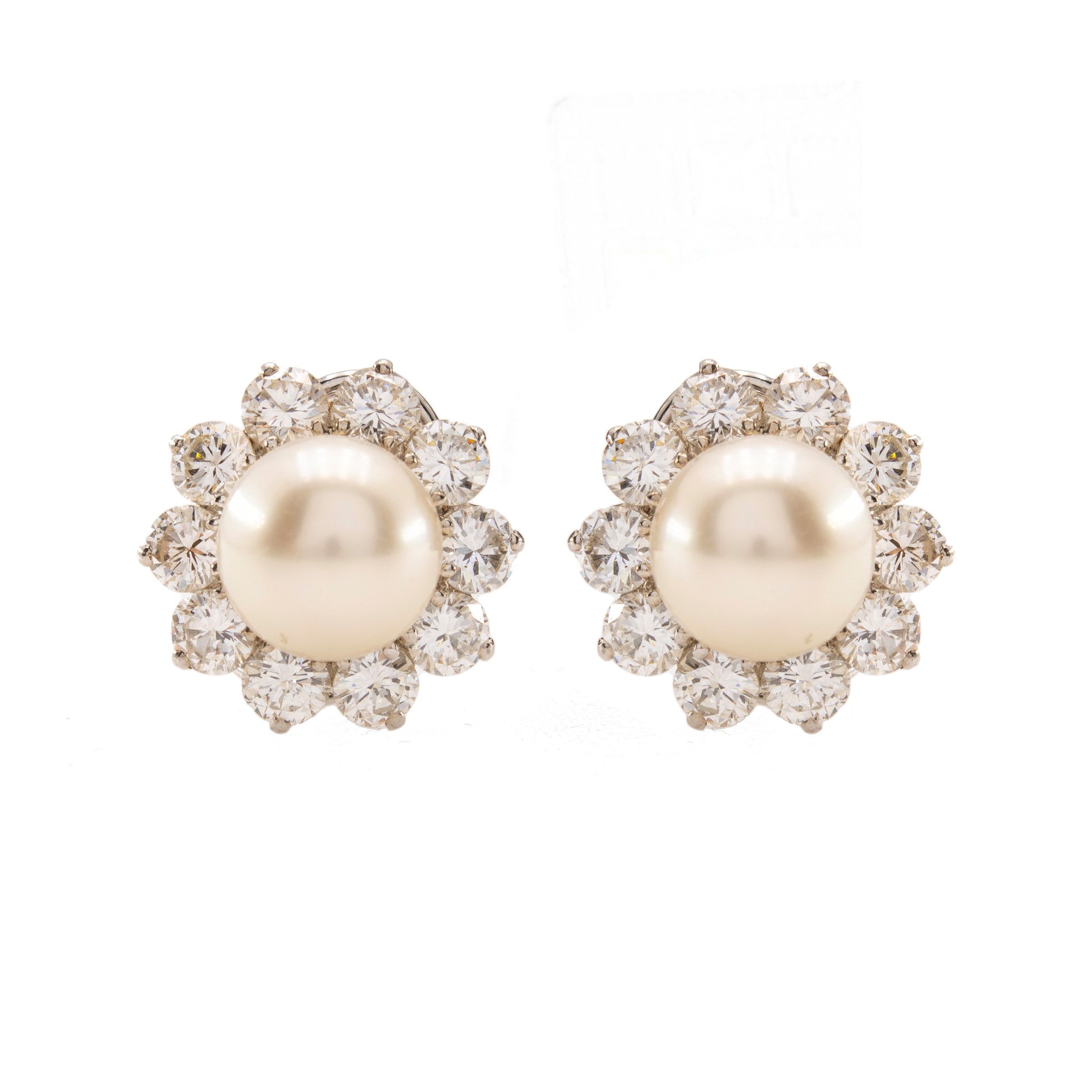 Orecchini a lobo in oro bianco 18kt perle e diamanti