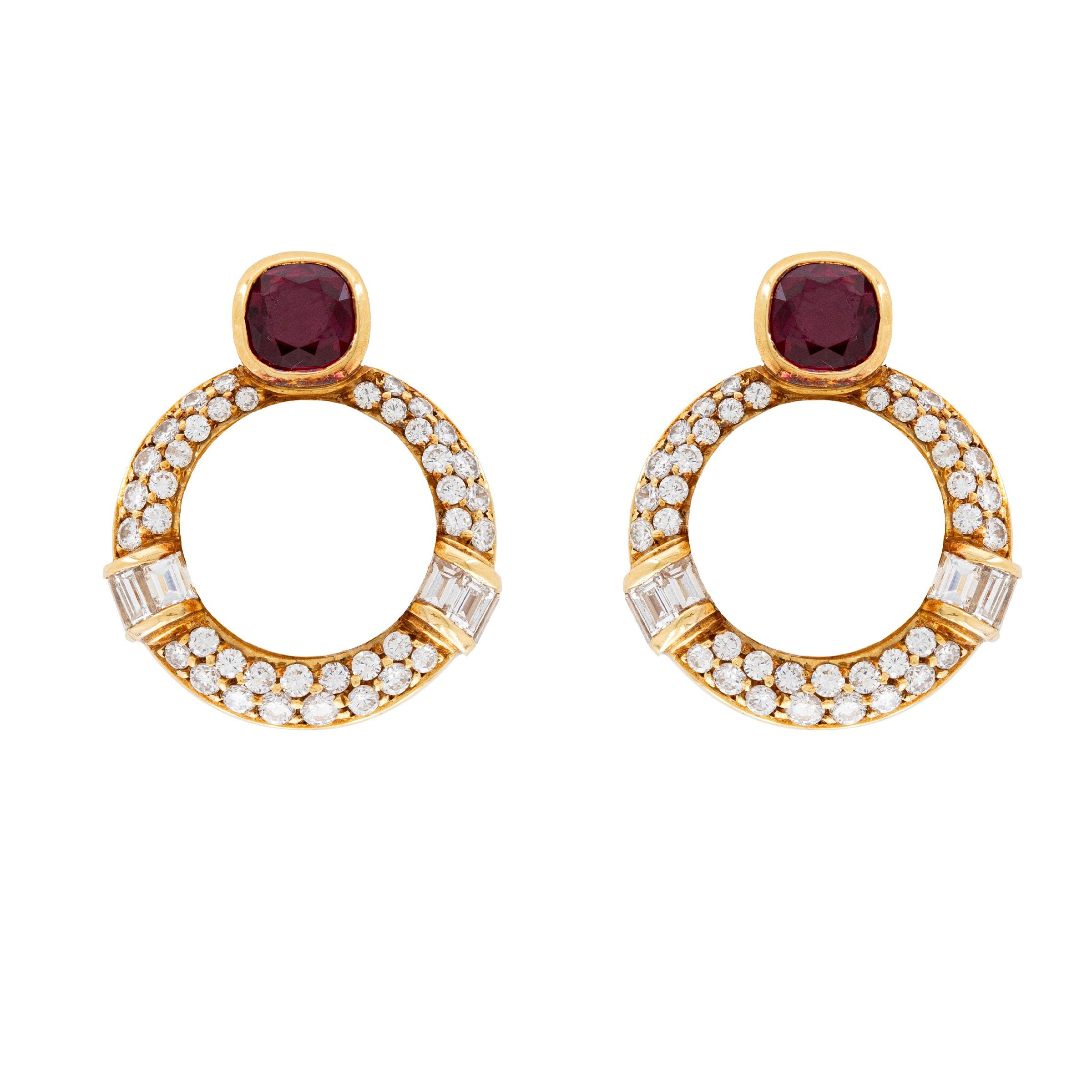 Orecchini a lobo in oro giallo 18kt rubini e diamanti