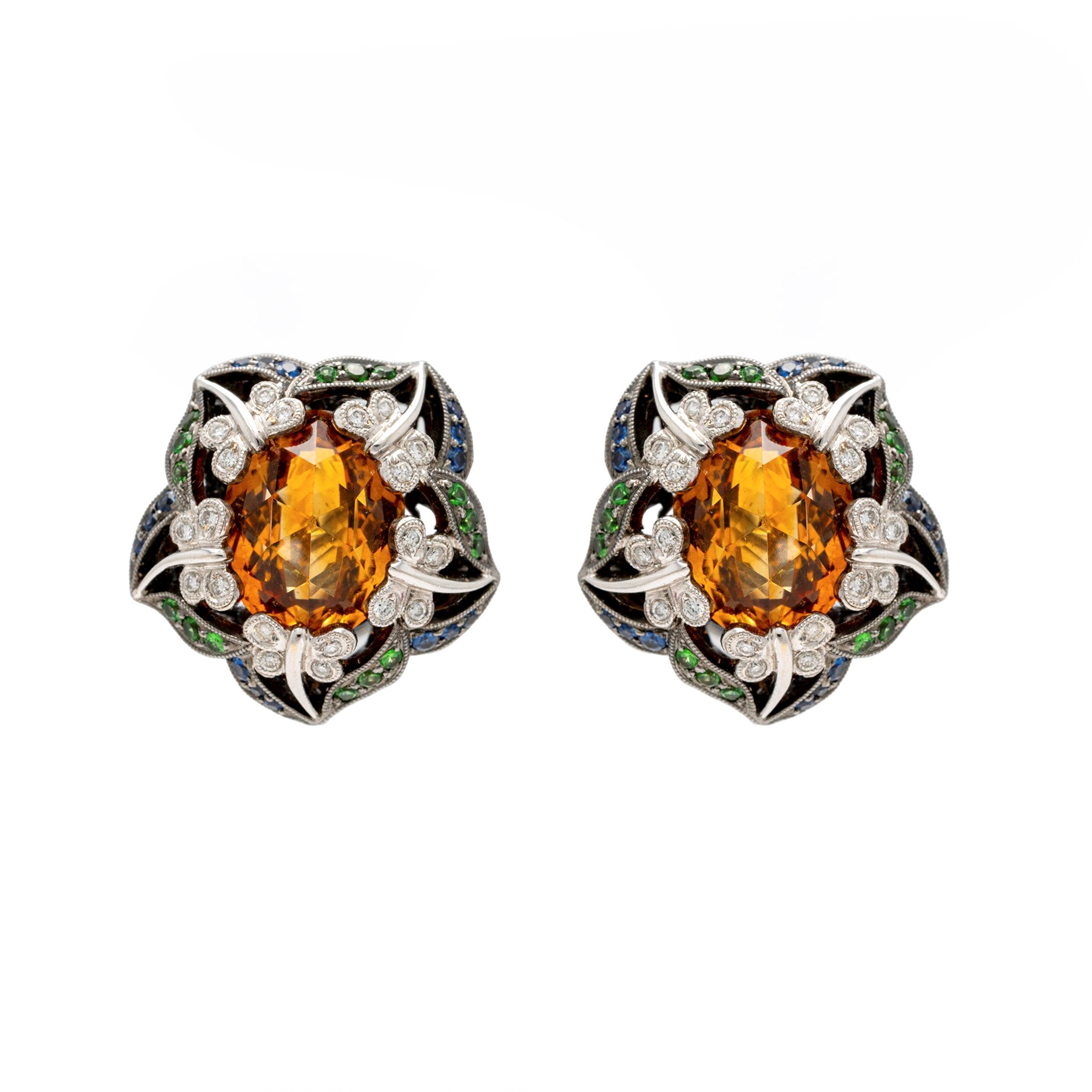Orecchini a lobo in oro nero 18kt due quarzi citrini