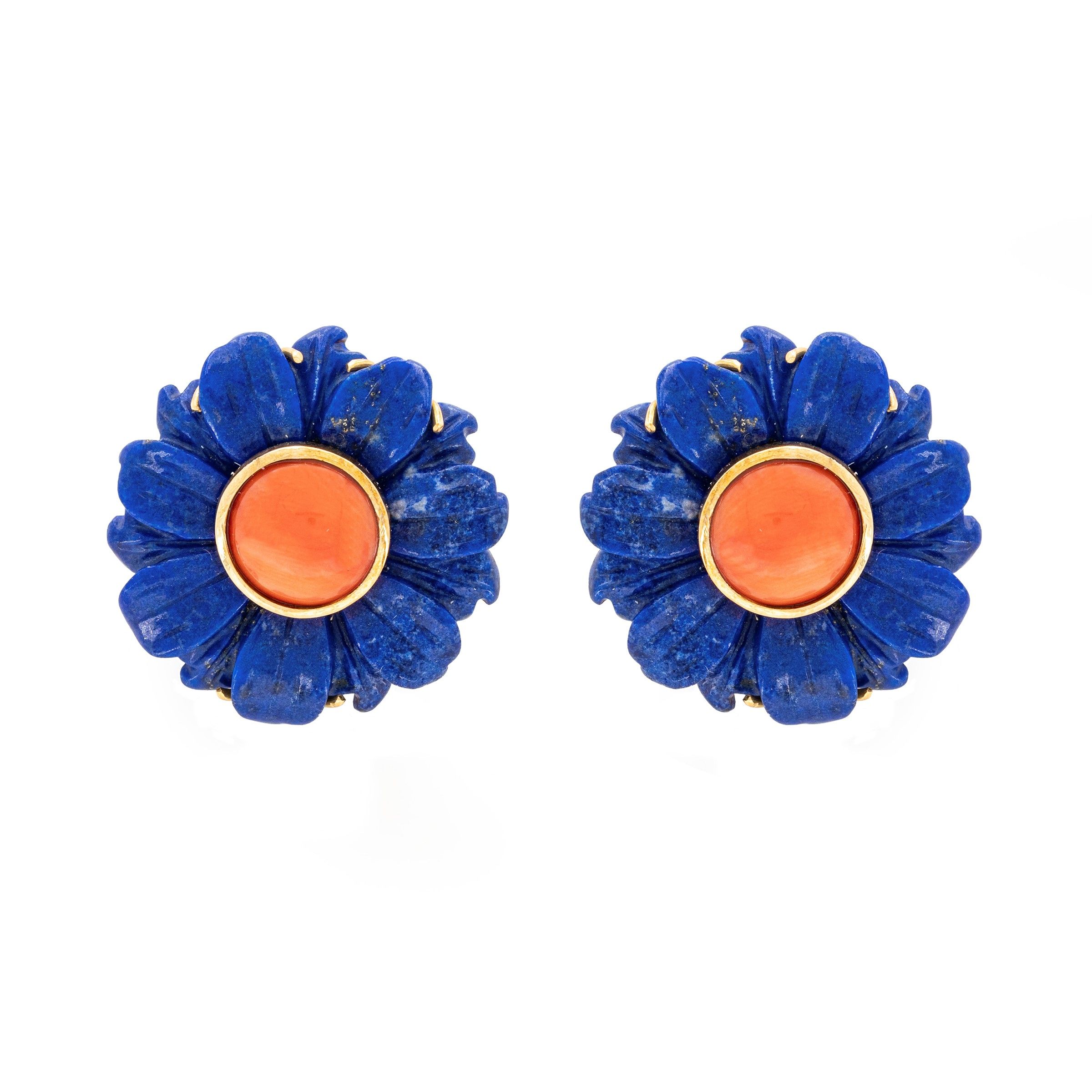 lapislazzulo e corallo taglio cabochon, diametro 3 cm.