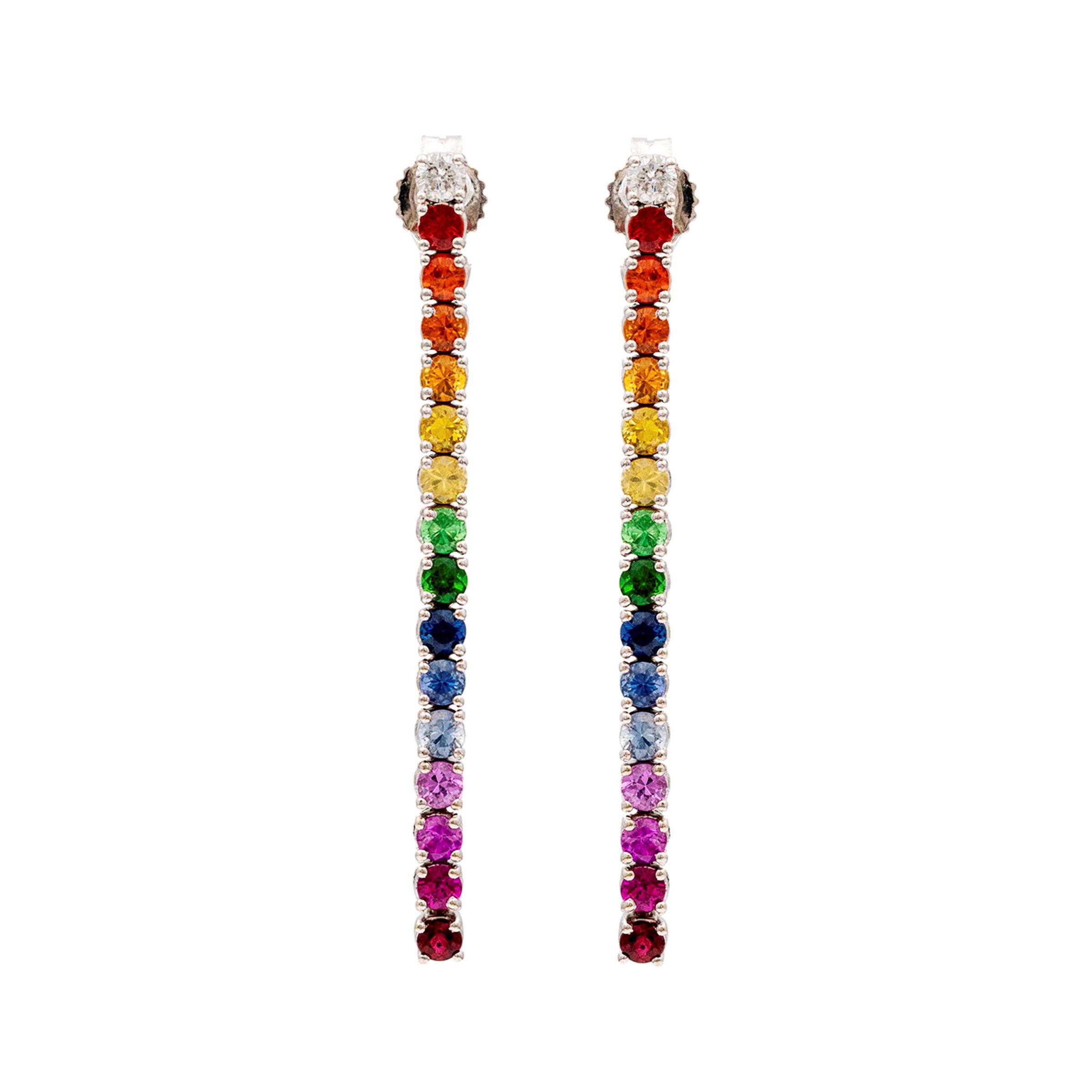 Orecchini pendenti in oro bianco zaffiri di diverso colore e diamanti