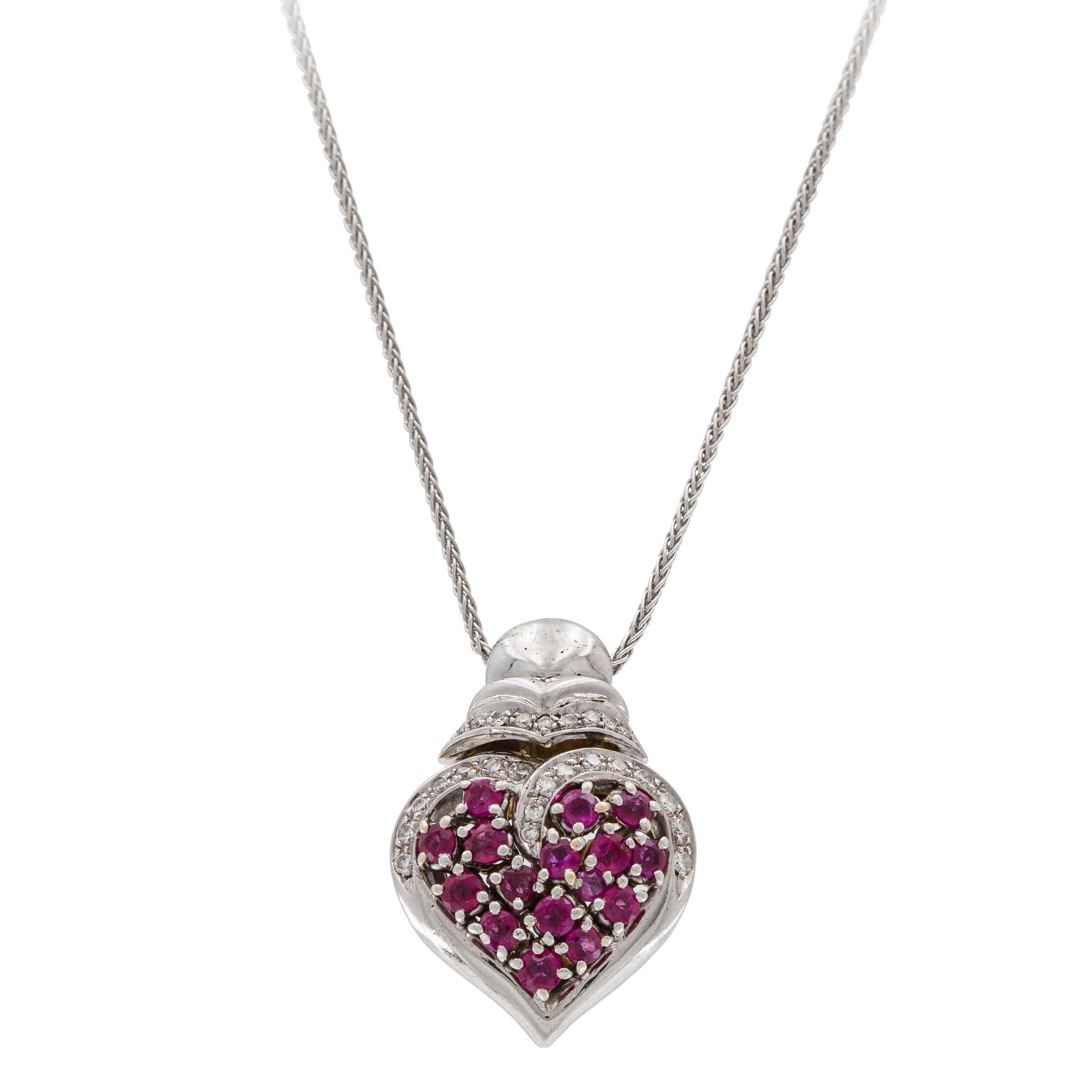 Pendente a cuore in oro bianco 18kt rubini e diamanti