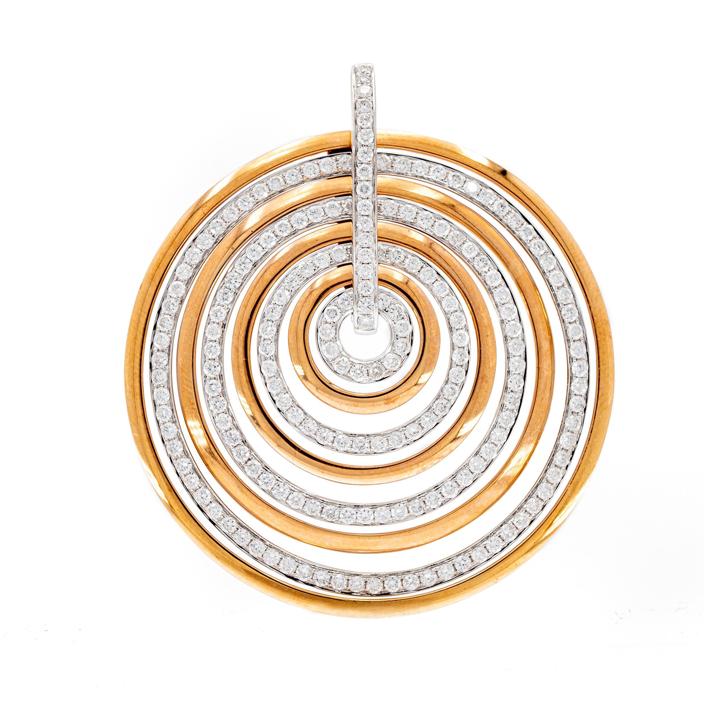 Pendente a motivo geometrico in oro a due colori 18kt e diamanti
