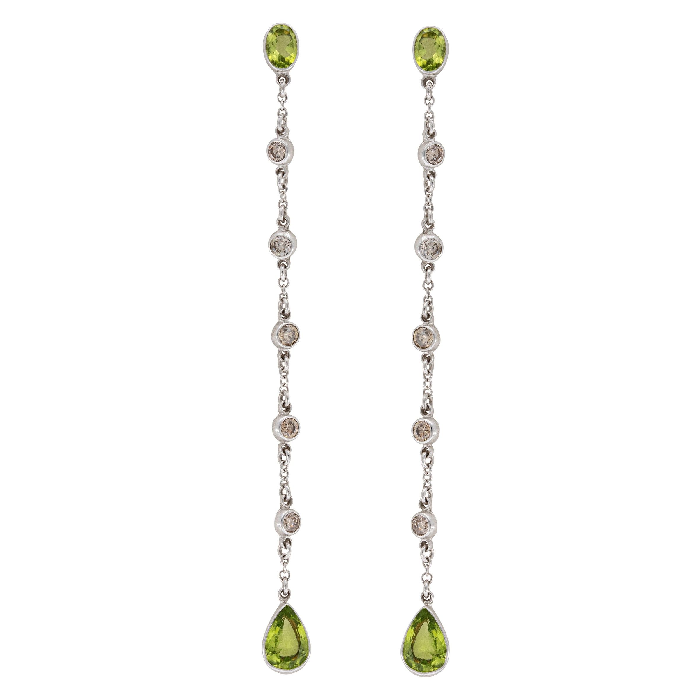 firmati diamanti cognac taglio brillante ct 1 circa e gocce di peridoto, lunghezza 9,5 cm. completi di scatola