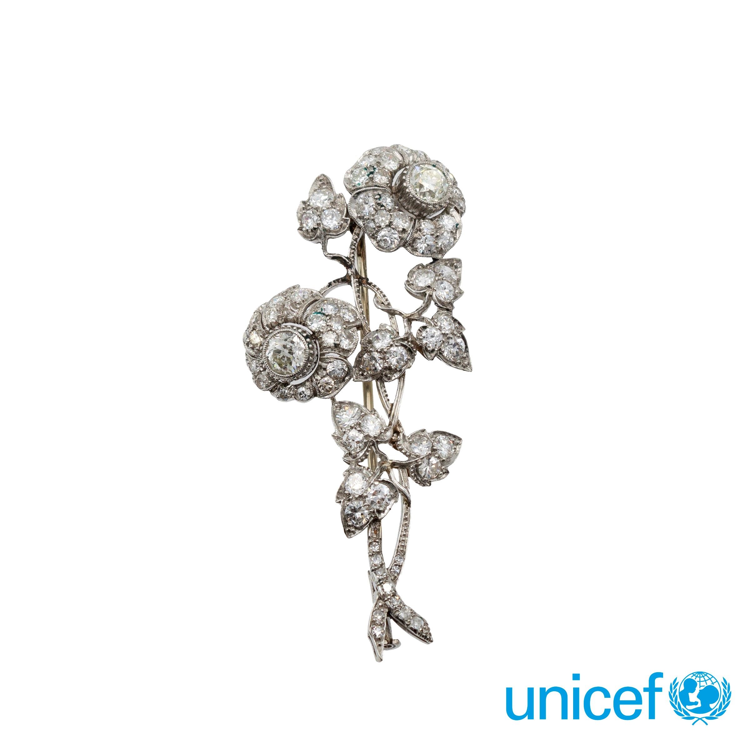 Spilla a motivo floreale in oro bianco 18kt e diamanti