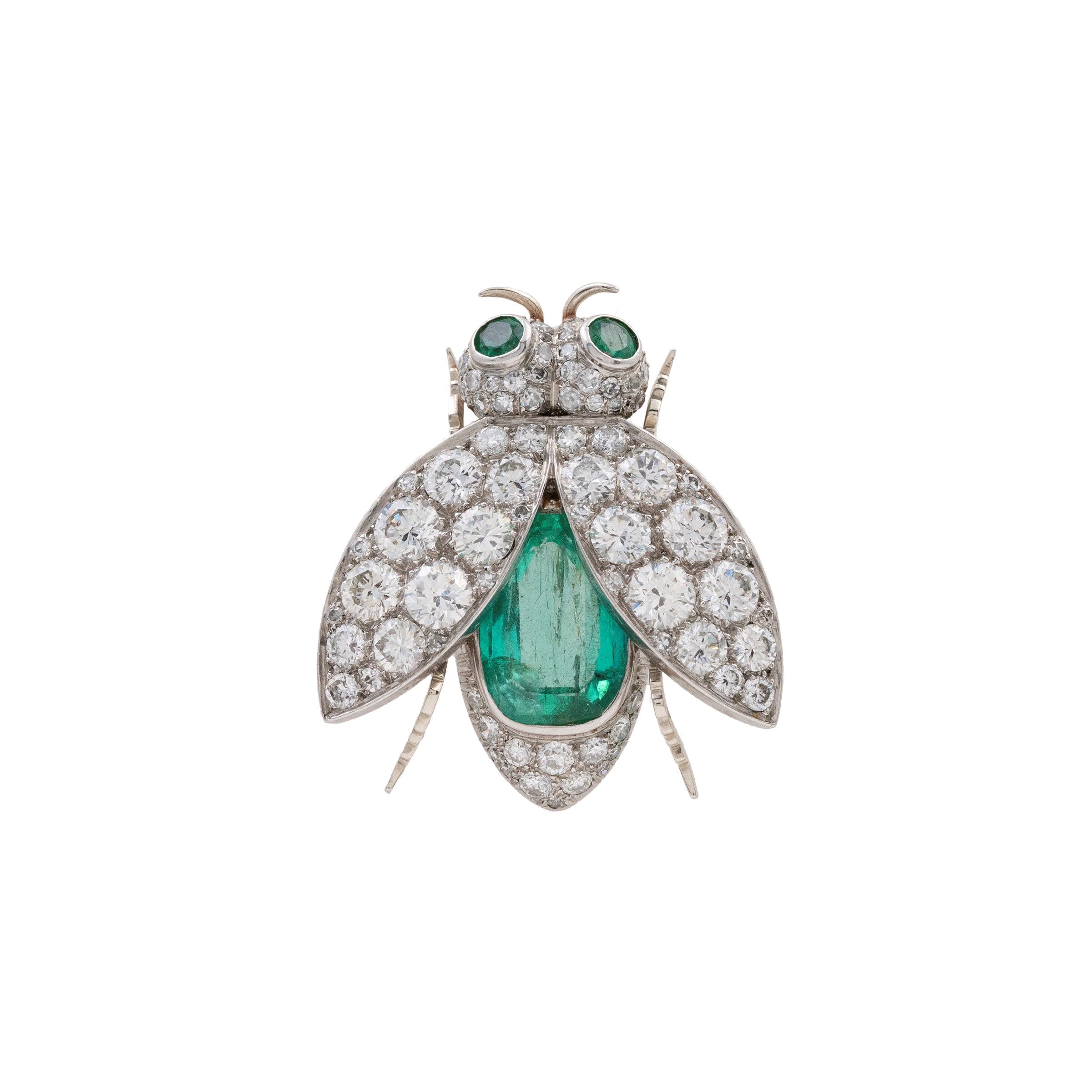Spilla ape in platino smeraldo naturale Columbiano
