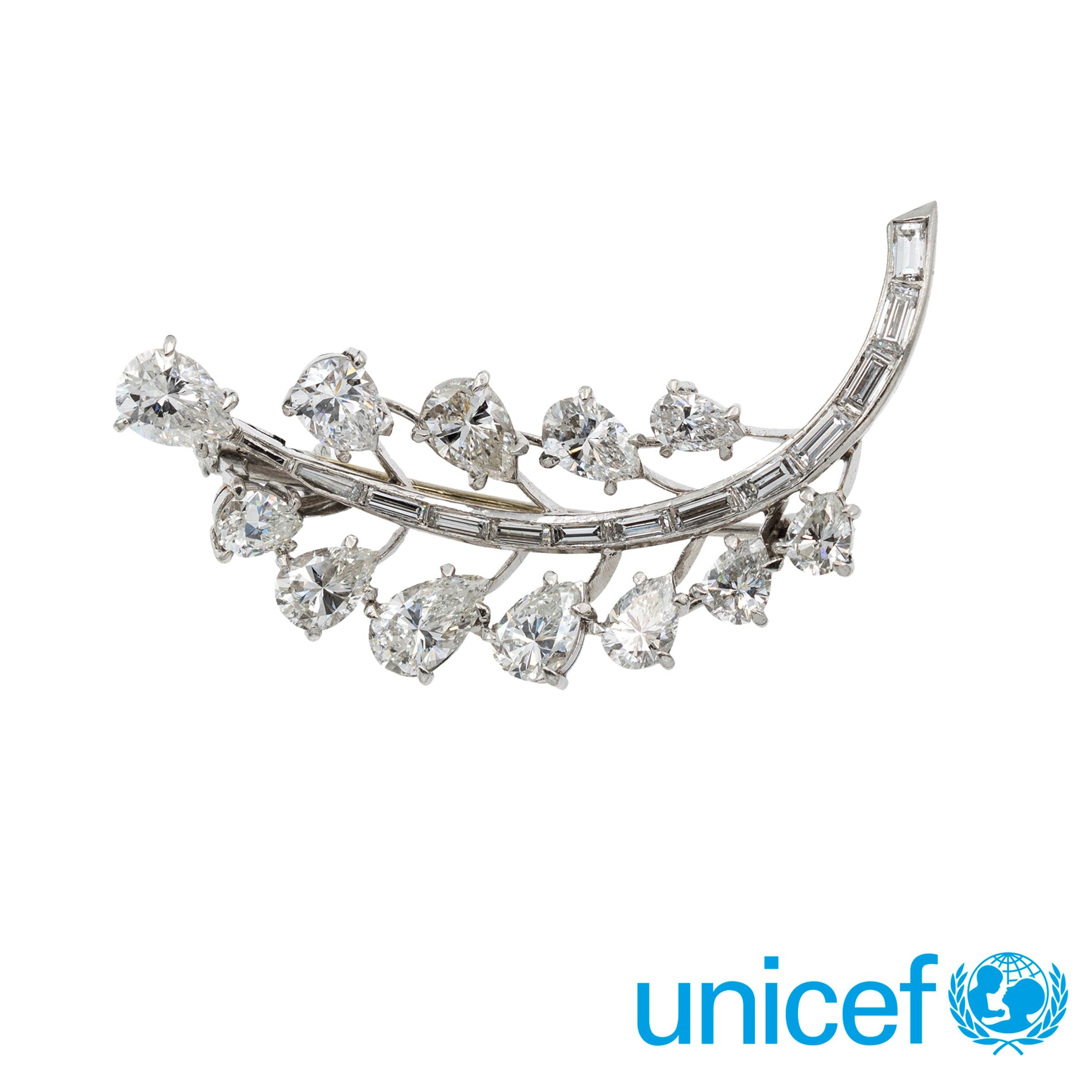 Spilla foglia in oro bianco 18kt e diamanti