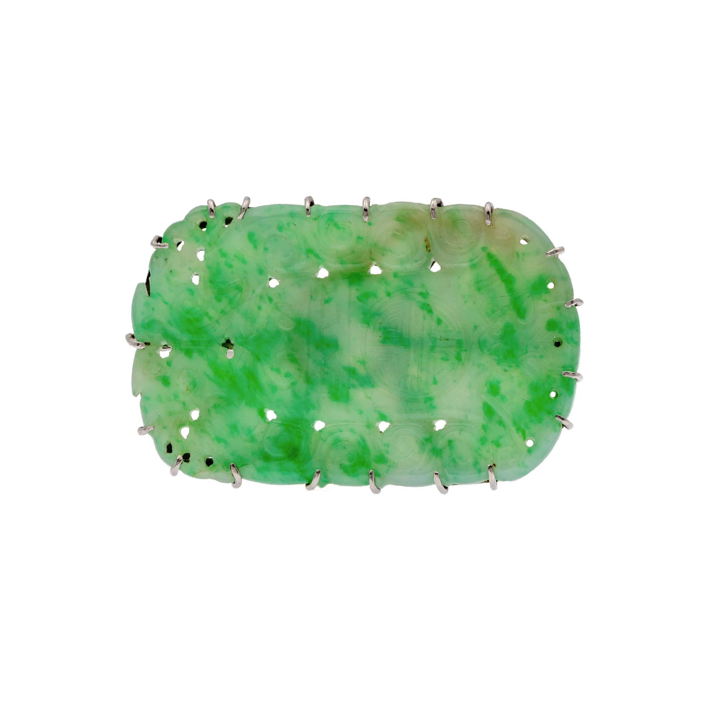 Spilla in oro bianco 18kt e giada incisa
