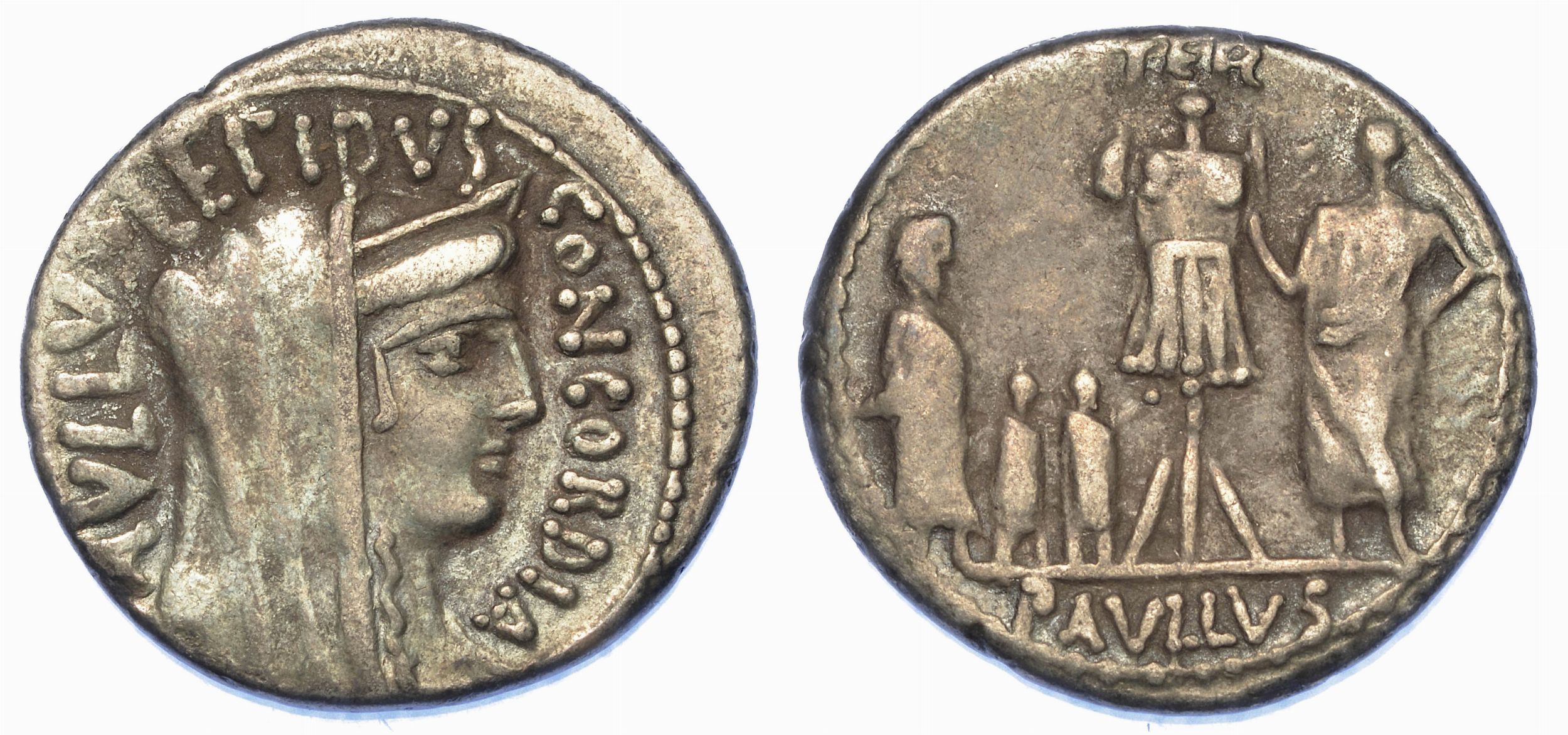 AEMILIA. L. Aemilius Lepidus Paullus, 62 a.C. Denario.