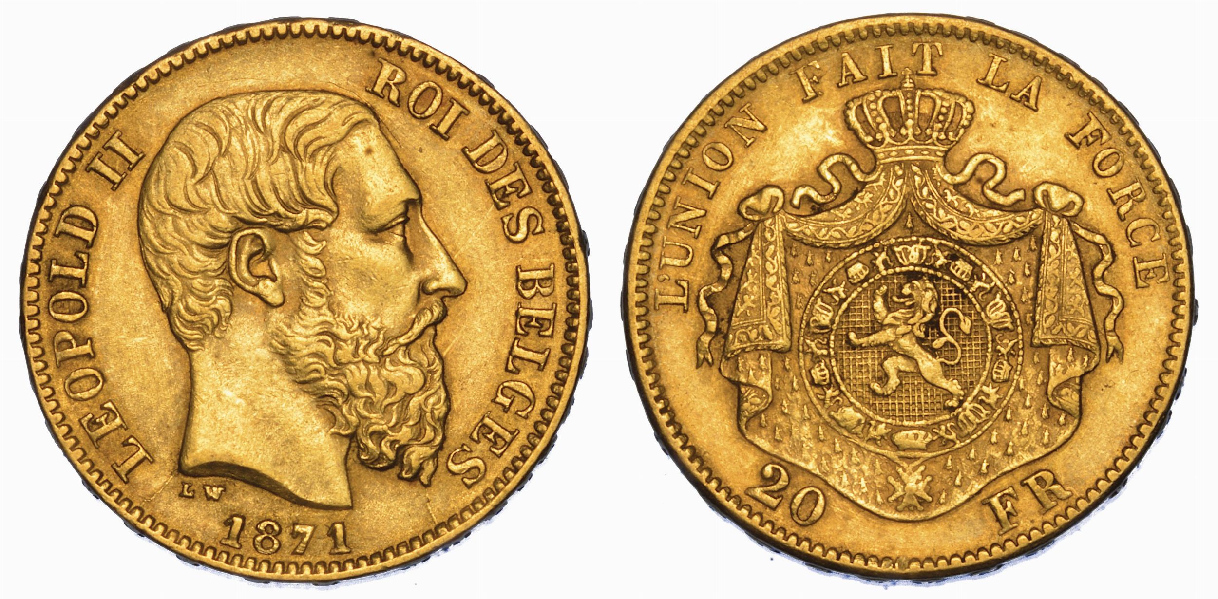 BELGIO. LEOPOLD II, 1865-1909. 20 Francs 1871.