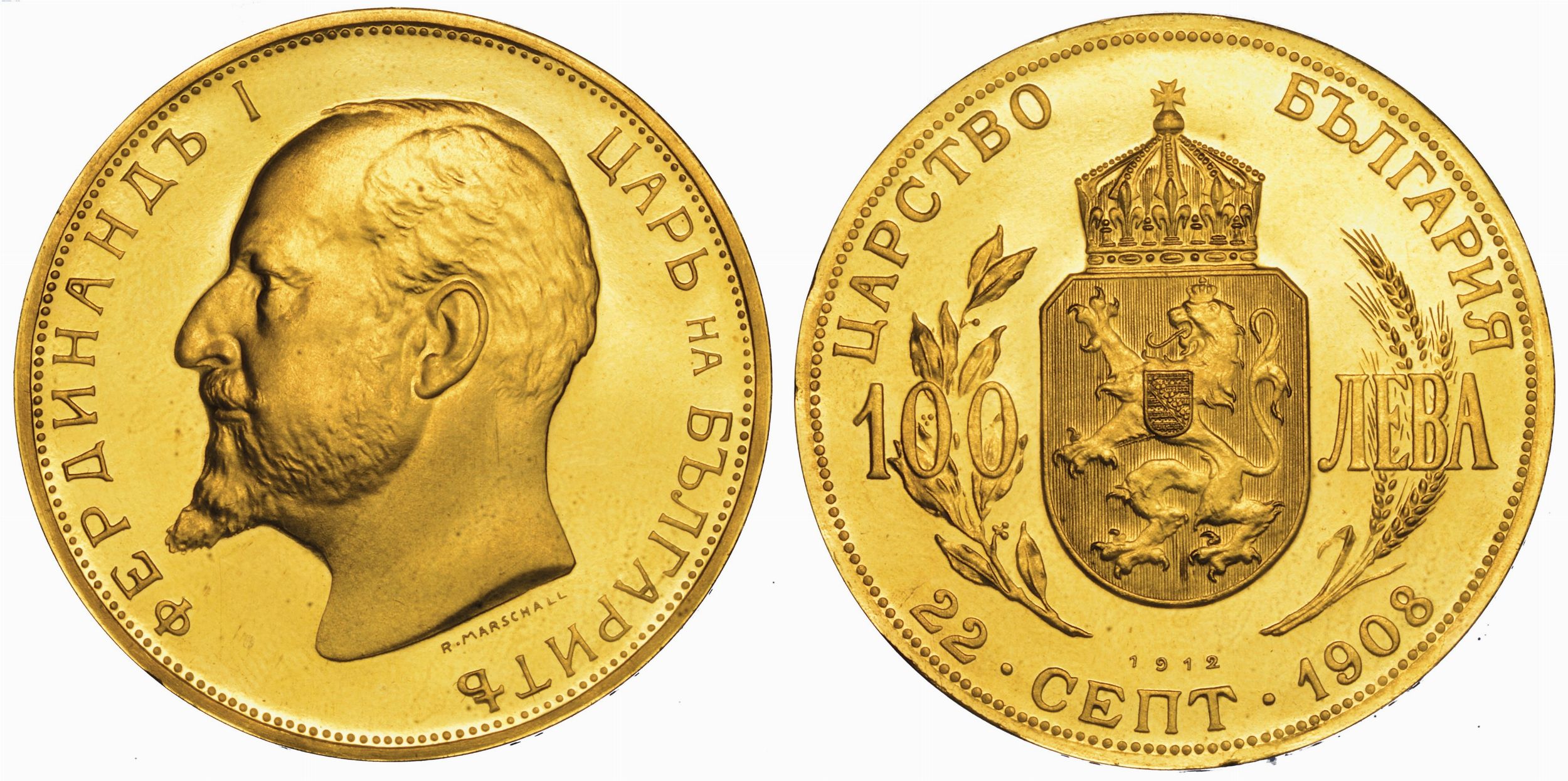 BULGARIA. FERDINAND I, 1908-1918. 100 Leva 1912. Riconio.