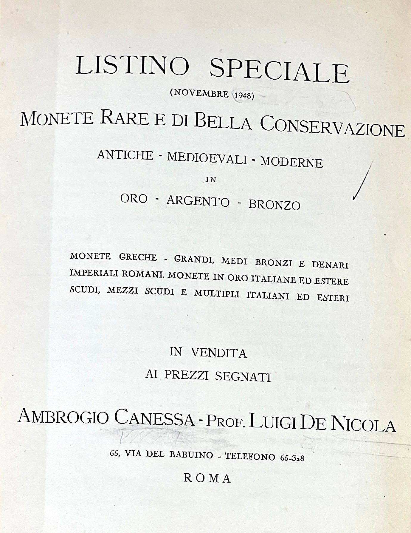 CANESSA A., DE NICOLA L. Lotto di tre cataloghi rilegati in un unico volume in mezza [..]
