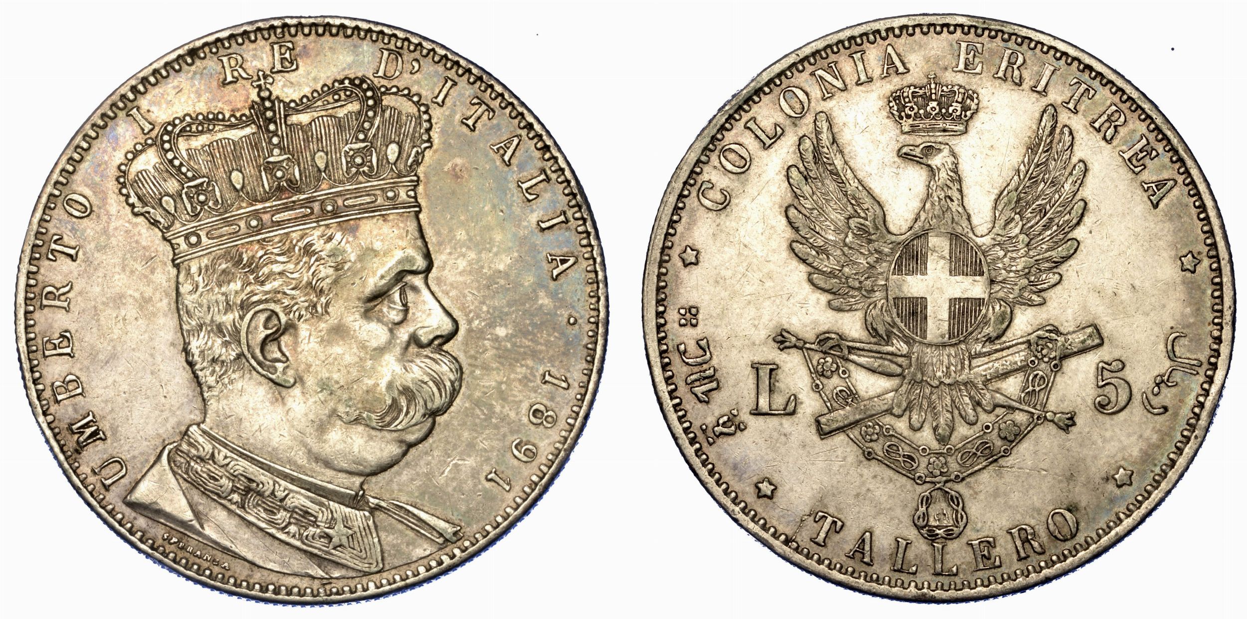 COLONIA ERITREA. UMBERTO I DI SAVOIA, 1890-1896. Tallero 1891.
