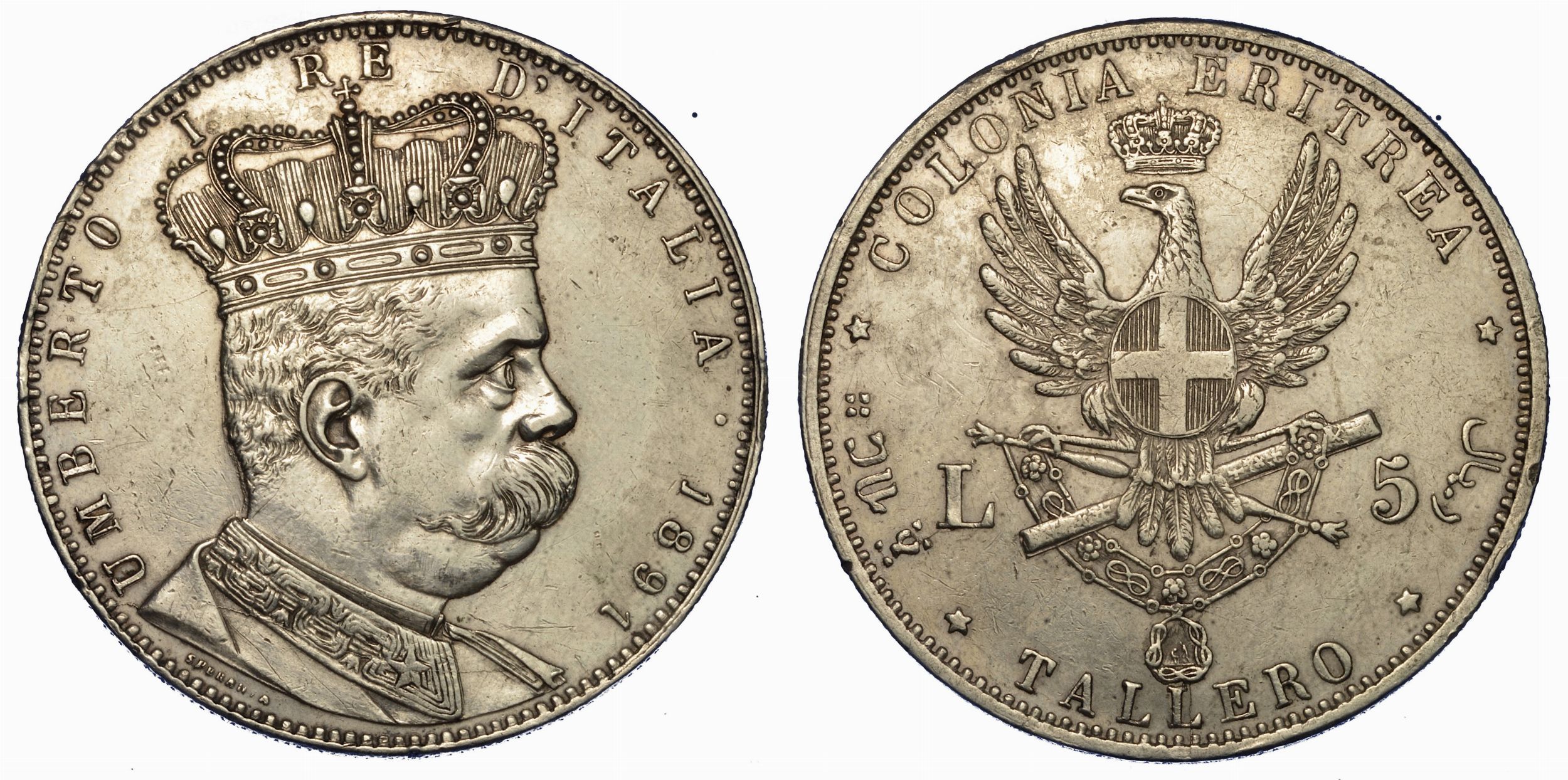 COLONIA ERITREA. UMBERTO I DI SAVOIA, 1890-1896. Tallero 1891.