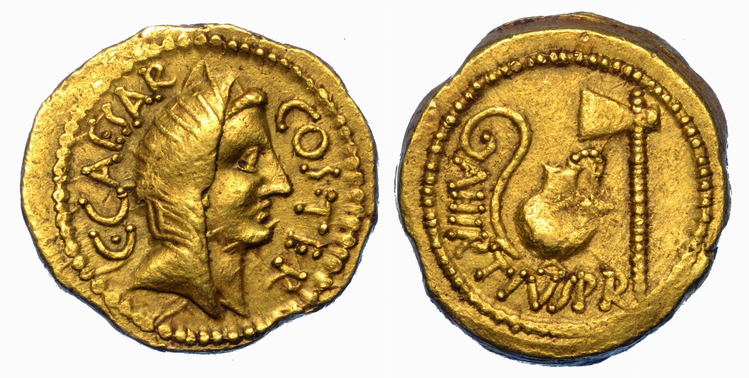 GIULIO CESARE - A. HIRTIUS. Aureo, anno 46 a.C.  - Asta Numismatica - Associazione Nazionale - Case d'Asta italiane