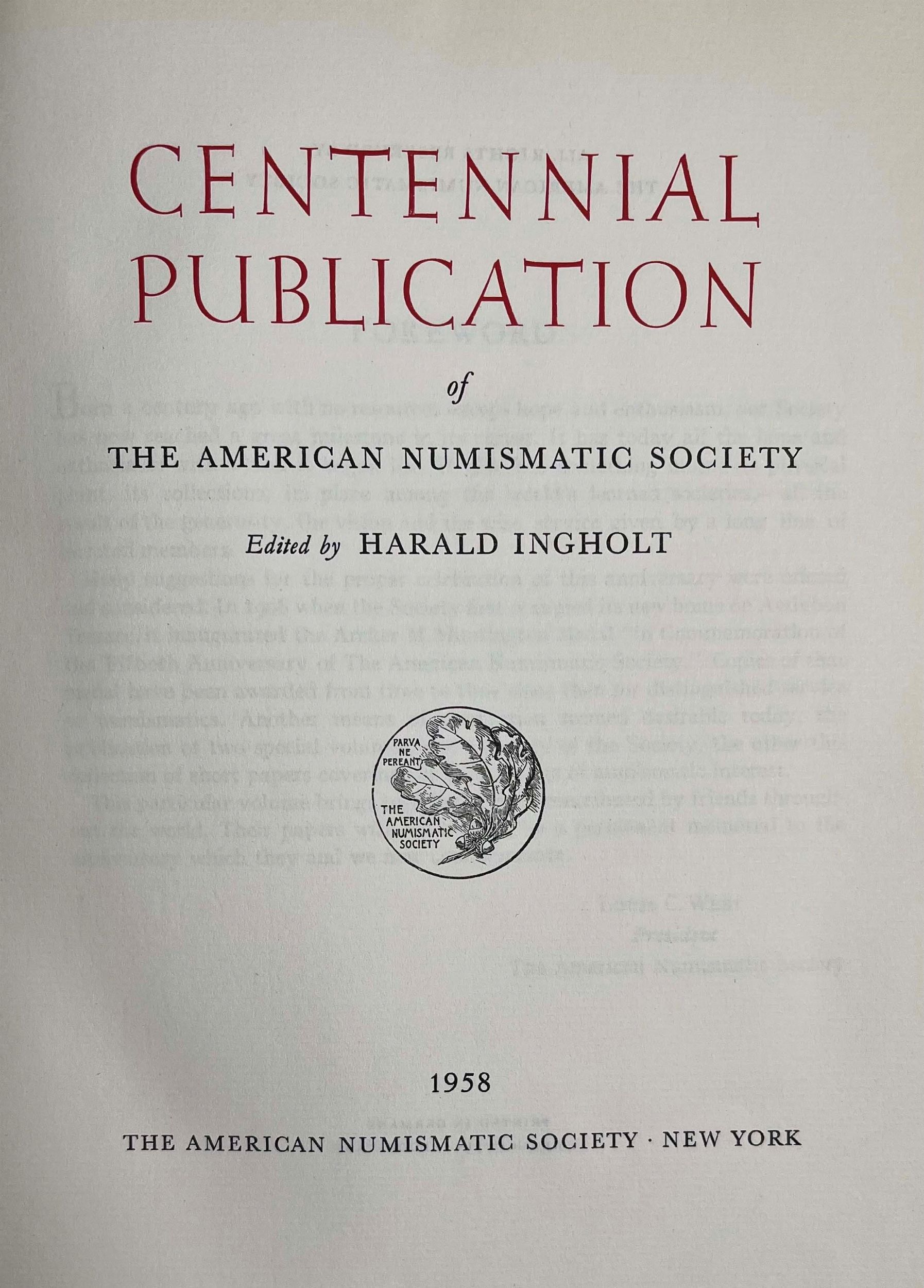 INGHOL HARALD. Centennial Publication of the American Numismatic Society.