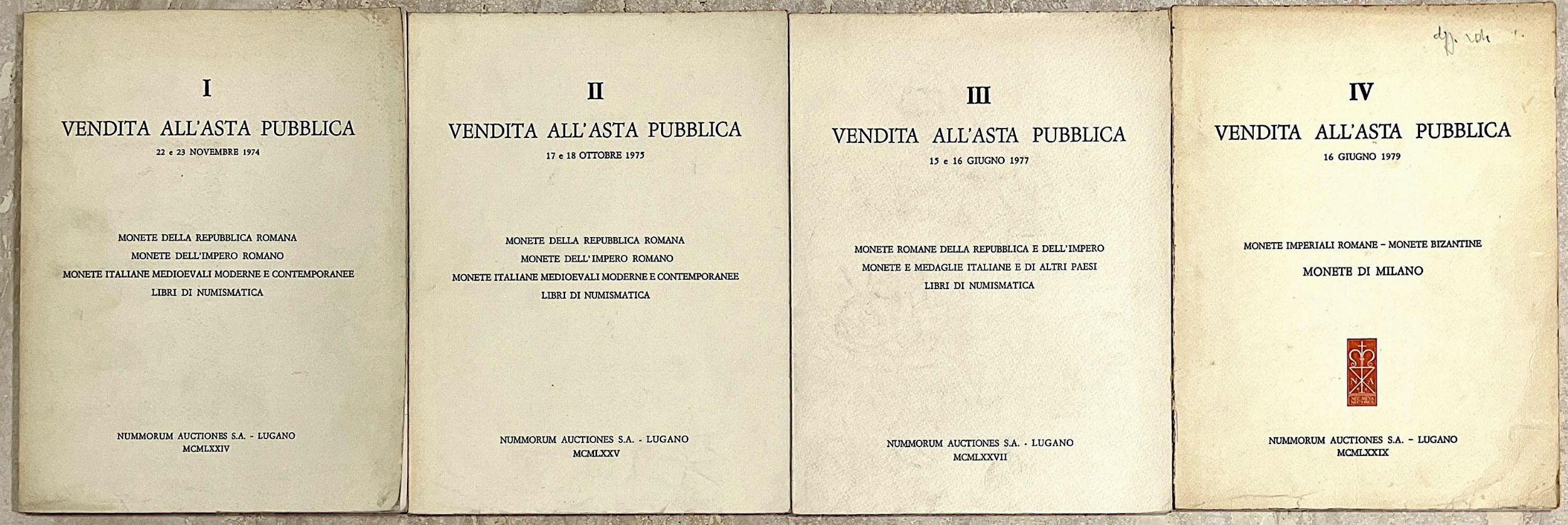 Lotto di 4 cataloghi. NUMMORUM AUCTIONES