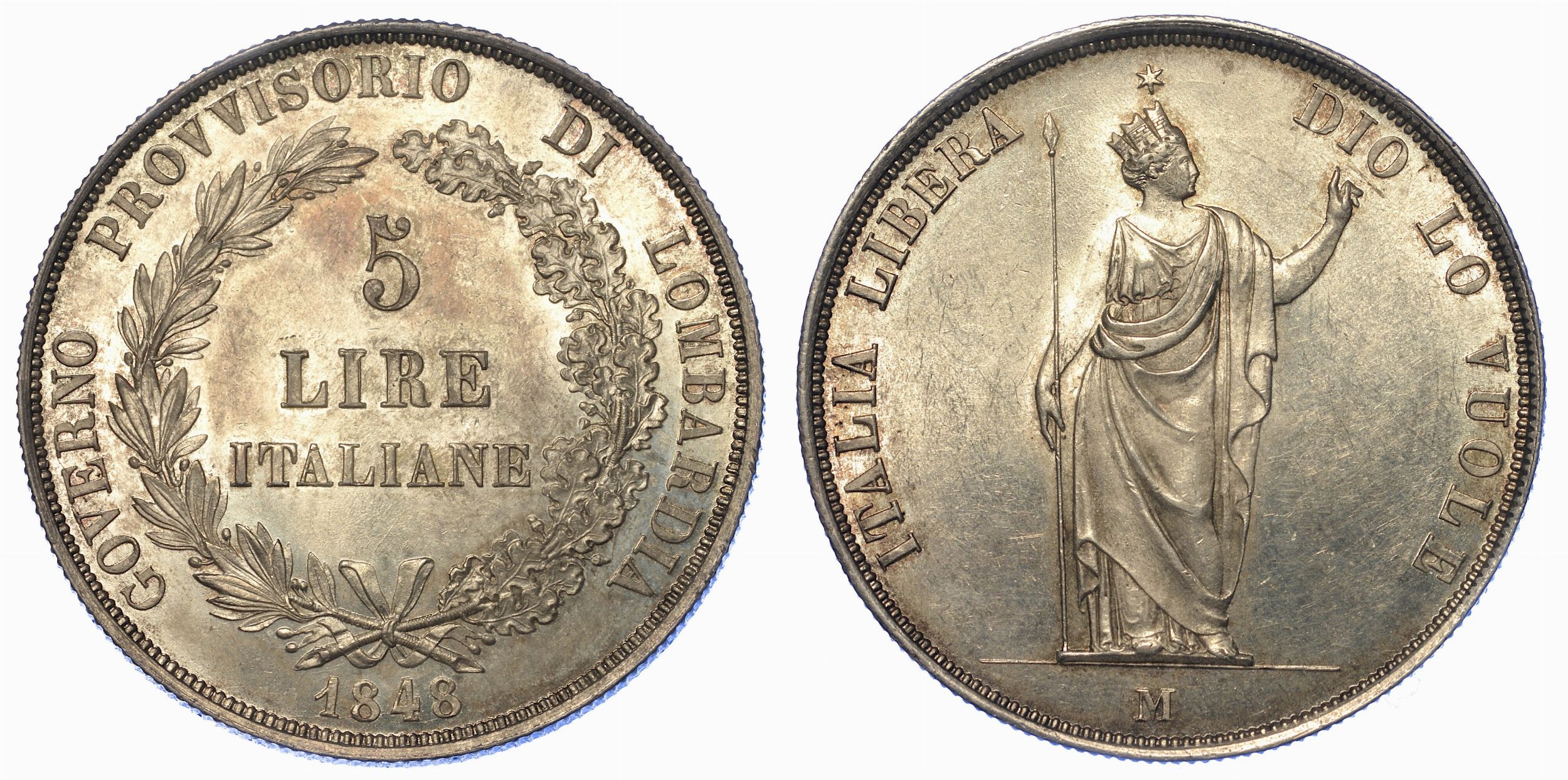 MILANO. GOVERNO PROVVISORIO DI LOMBARDIA 1848. 5 Lire 1848.