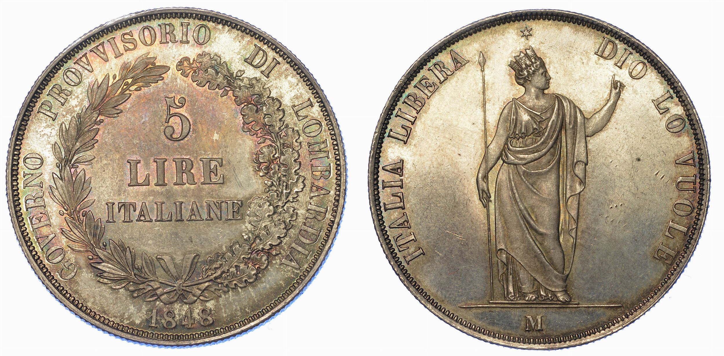 MILANO. GOVERNO PROVVISORIO DI LOMBARDIA 1848. 5 Lire 1848.