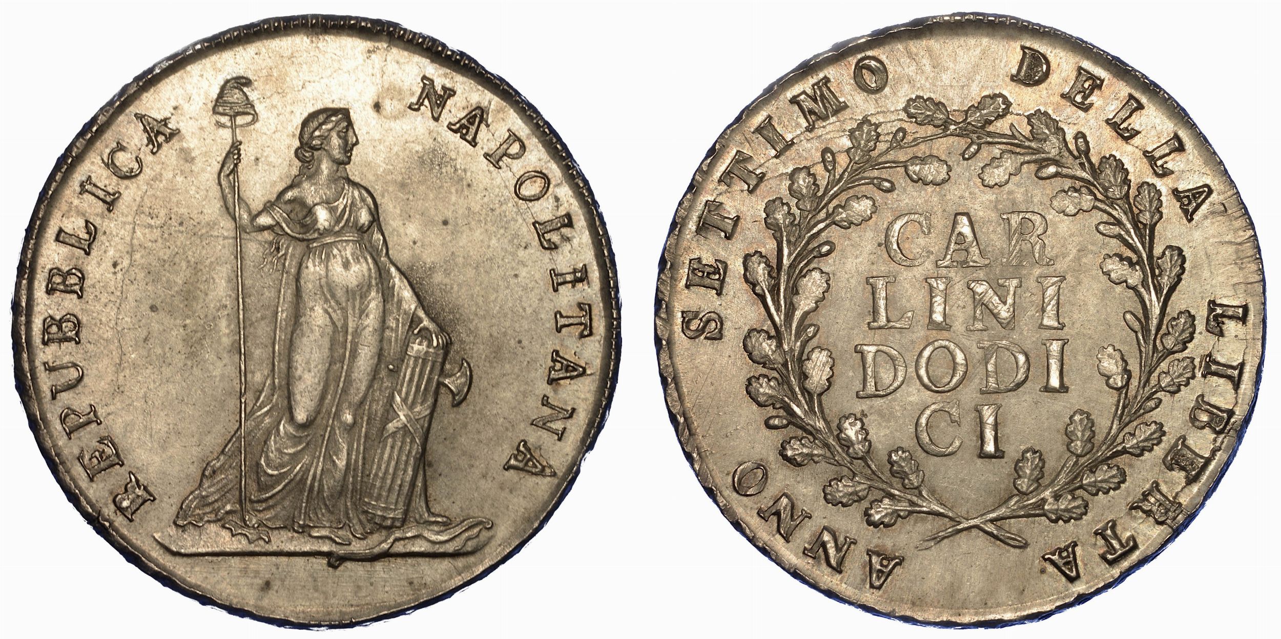 NAPOLI. REPUBBLICA NAPOLETANA 1799. Piastra da 12 Carlini A. VII (1799).