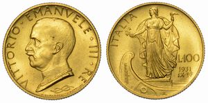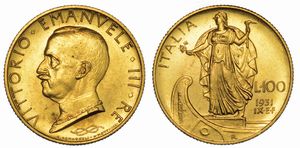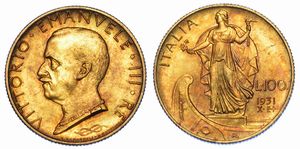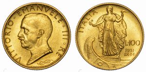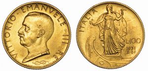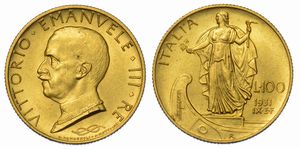 100 lire 1936/A. XIV. Impero. Testa nuda del sovrano a d. R/ Figura intera di littore rivolto a s., con vittoria [..]