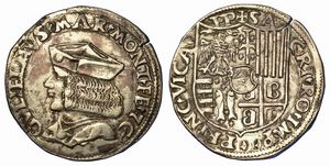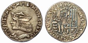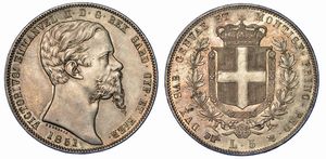 Testa a d. R/ Stemma sabaudo da cui pende il collare dell'Annunziata fra rami di alloro e di quercia. Gig. 23. [..]