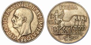 Busto a d. R/ L'Italia elmata con scudo e ramo d'ulivo su quadriga briosa a s. Gig. 72. Pag. 708. Molto rara. [..]