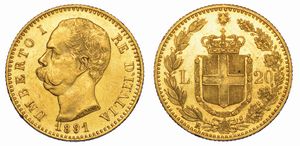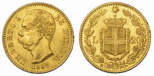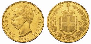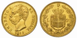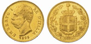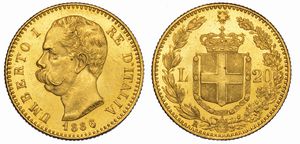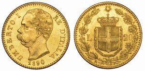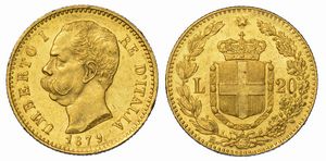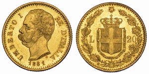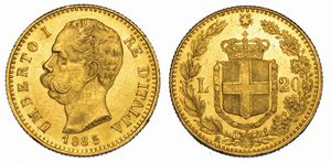 Testa a s. R/ Stemma sabaudo coronato. Gig. 14. Molto rara. g. 6,43. Diam. mm. 21,16. Oro. Più di SPL