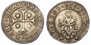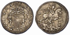 Scudo coronato a cartocci con nastri svolazzanti; ai lati, rami di palma e di alloro. R/ S. Giorgio a cavallo [..]