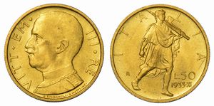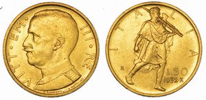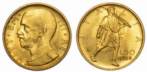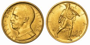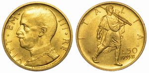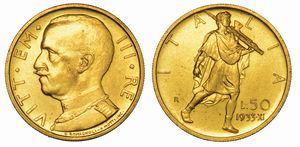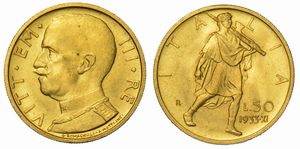 Testa a d. R/Littore saluta romanamente l'Italia seduta verso s. Gig. 36. g. 14,96. Diam. mm. 35,36. Arg. Impercettibili [..]