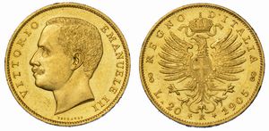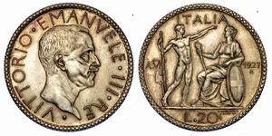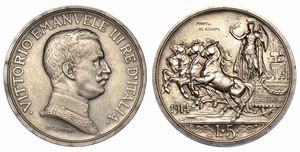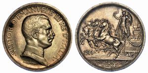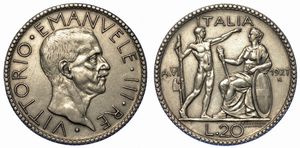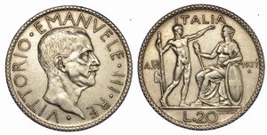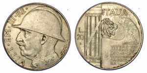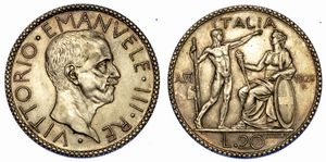 Testa a d. R/ Littore saluta romanamente l'Italia seduta a s. Gig. 35. Rarissimo. g. 14,94. Diam. mm. 35,33. Arg. [..]
