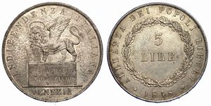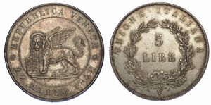 Leone nimbato e alato verso s., poggia la zampa su Libro aperto. R/ Valore entro corona di quercia. Gig. 1. Molto [..]