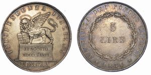 Leone nimbato e alato verso s., poggia la zampa su Libro aperto. R/ Valore entro corona di quercia. Pag. 176 Gig. [..]