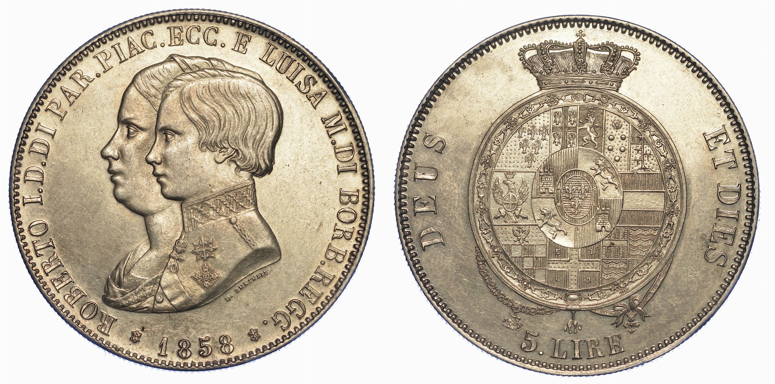 PARMA. ROBERTO DI BORBONE - REGGENZA DELLA MADRE LUISA MARIA, 1854-1859. 5 Lire [..]