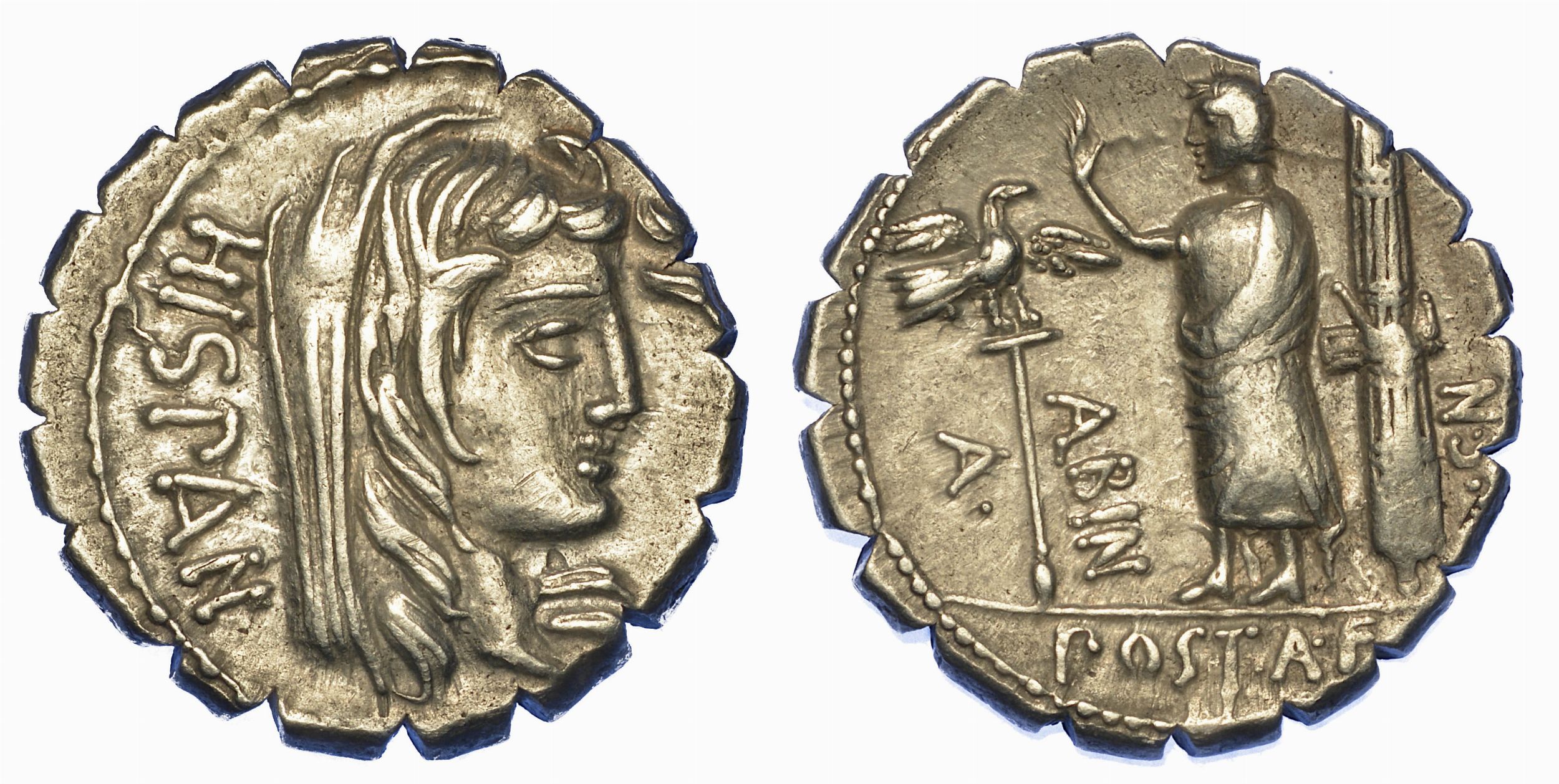POSTUMIA. A. Postumius A.f. Sp.n. Albinus, 81 a.C. Denario.