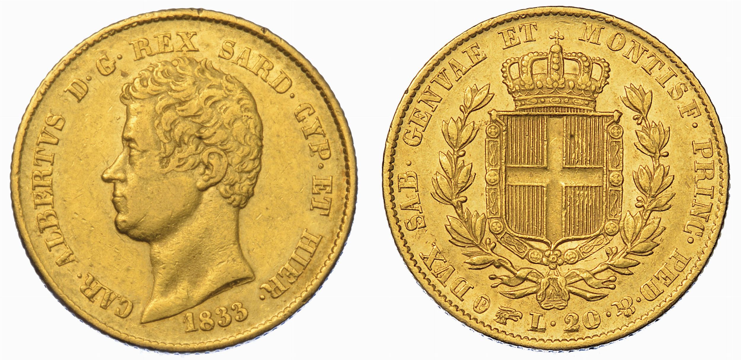 REGNO DI SARDEGNA. CARLO ALBERTO DI SAVOIA, 1831-1849. 20 Lire 1833. Torino.