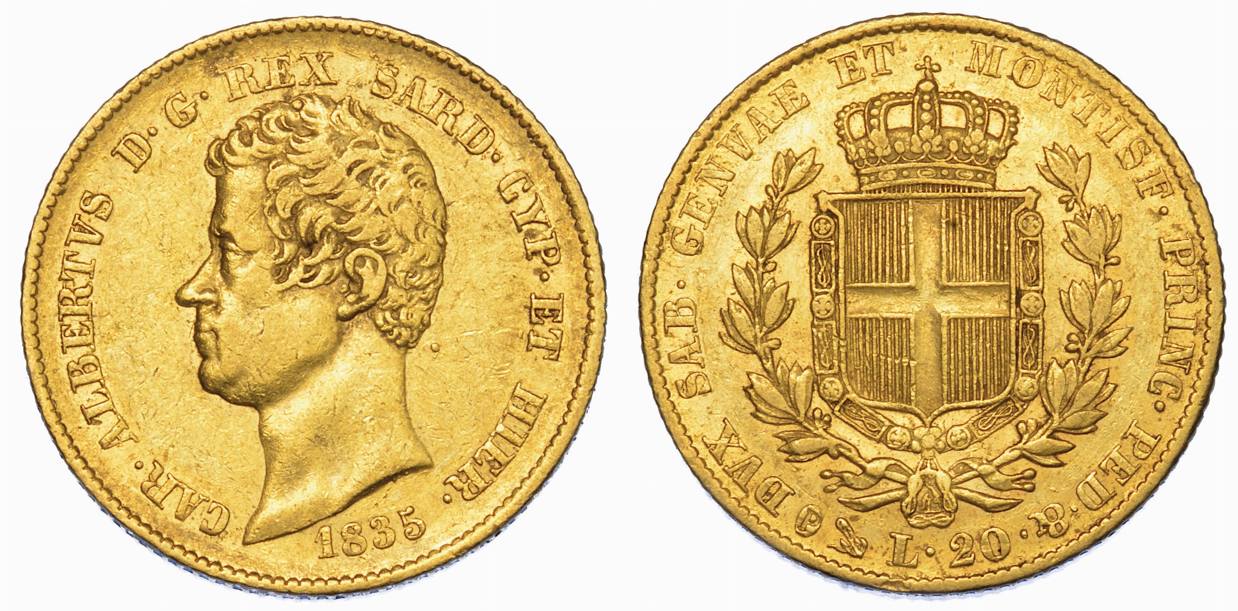 REGNO DI SARDEGNA. CARLO ALBERTO DI SAVOIA, 1831-1849. 20 Lire 1835. Genova.