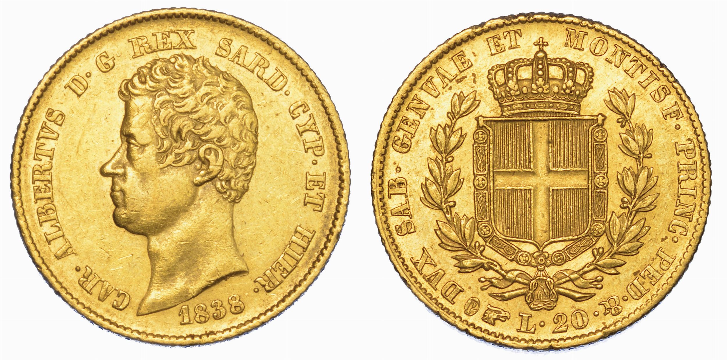 REGNO DI SARDEGNA. CARLO ALBERTO DI SAVOIA, 1831-1849. 20 Lire 1838. Torino.