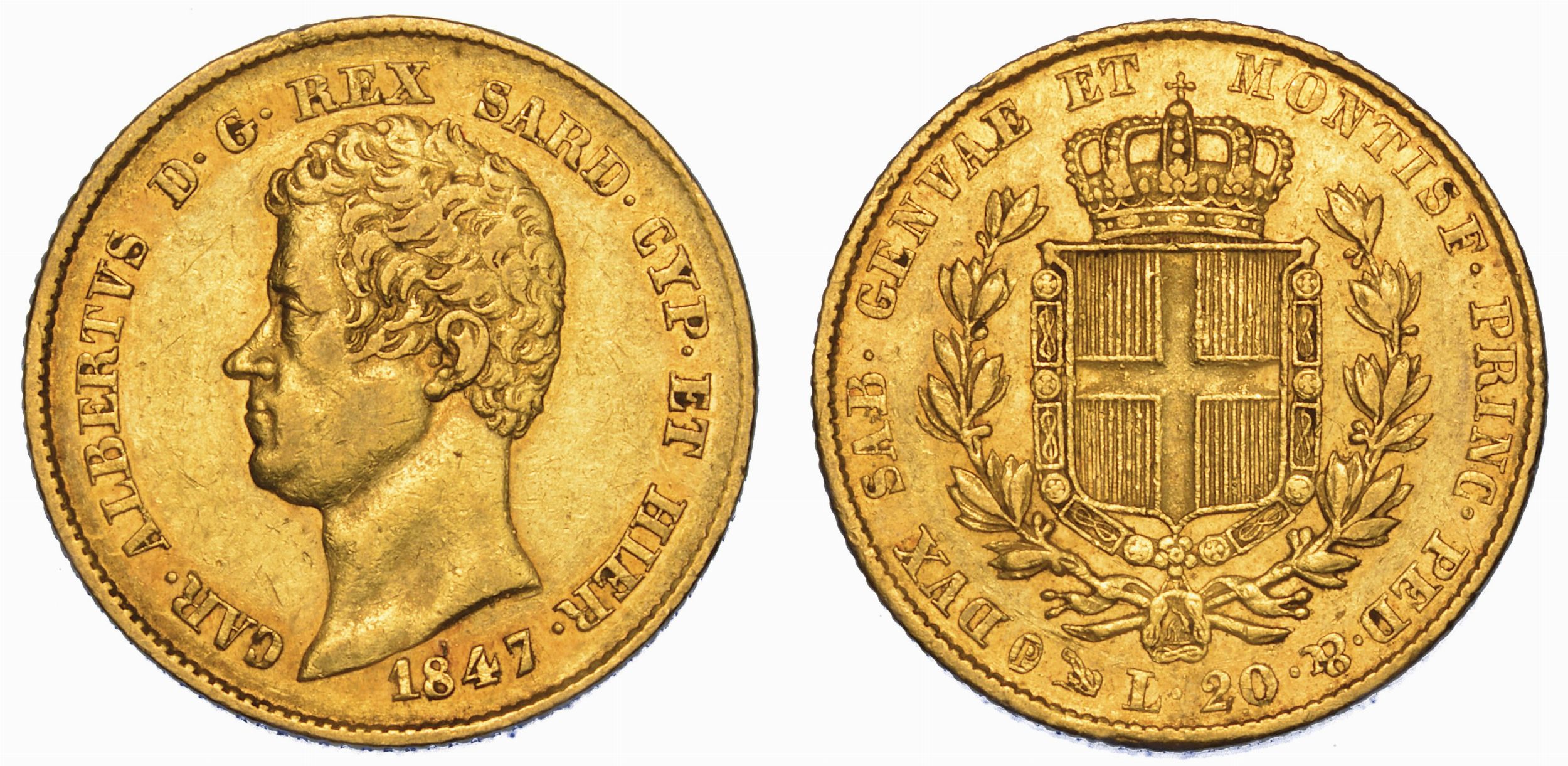 REGNO DI SARDEGNA. CARLO ALBERTO DI SAVOIA, 1831-1849. 20 Lire 1847. Genova.