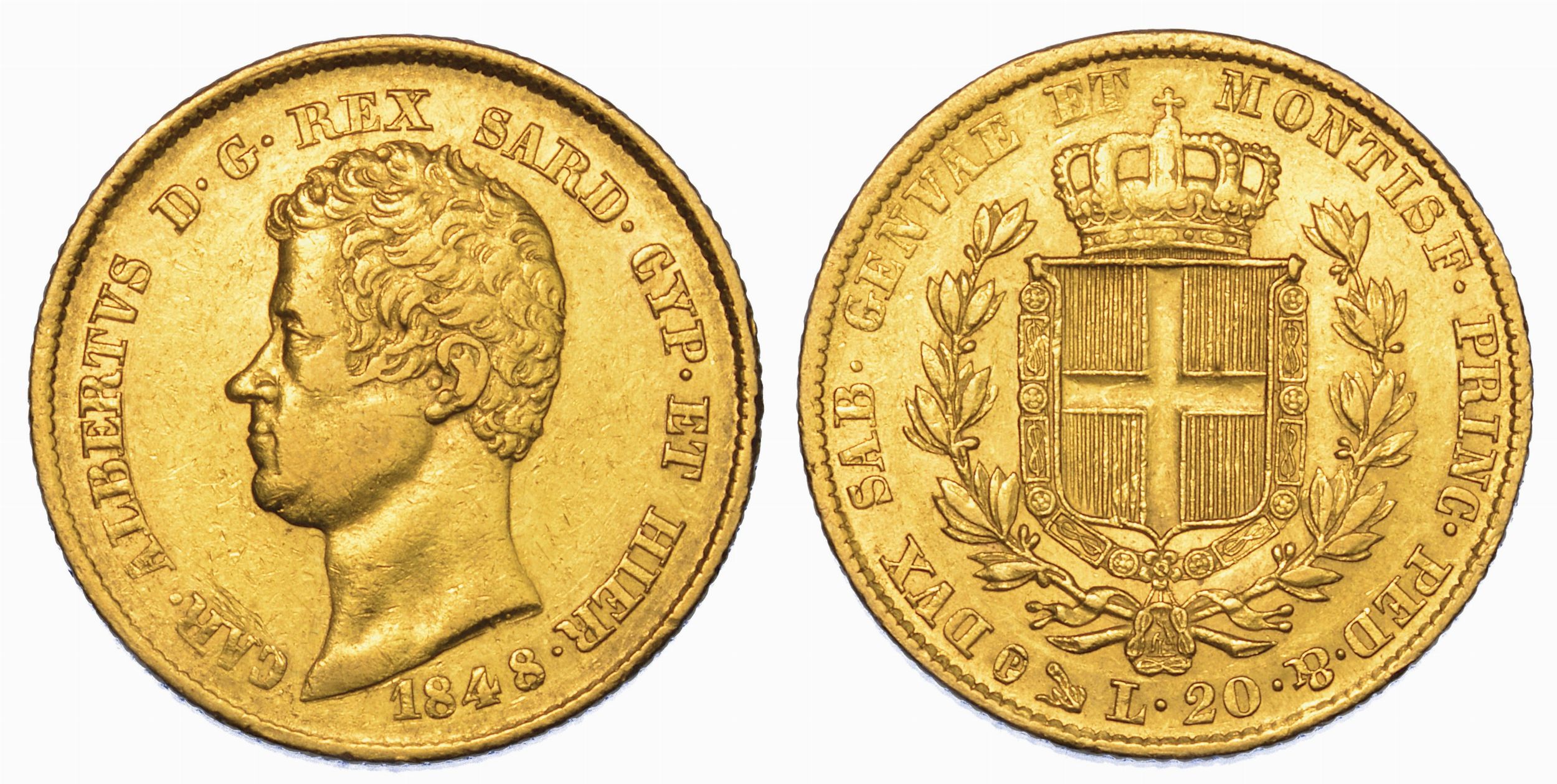 REGNO DI SARDEGNA. CARLO ALBERTO DI SAVOIA, 1831-1849. 20 Lire 1848. Genova.