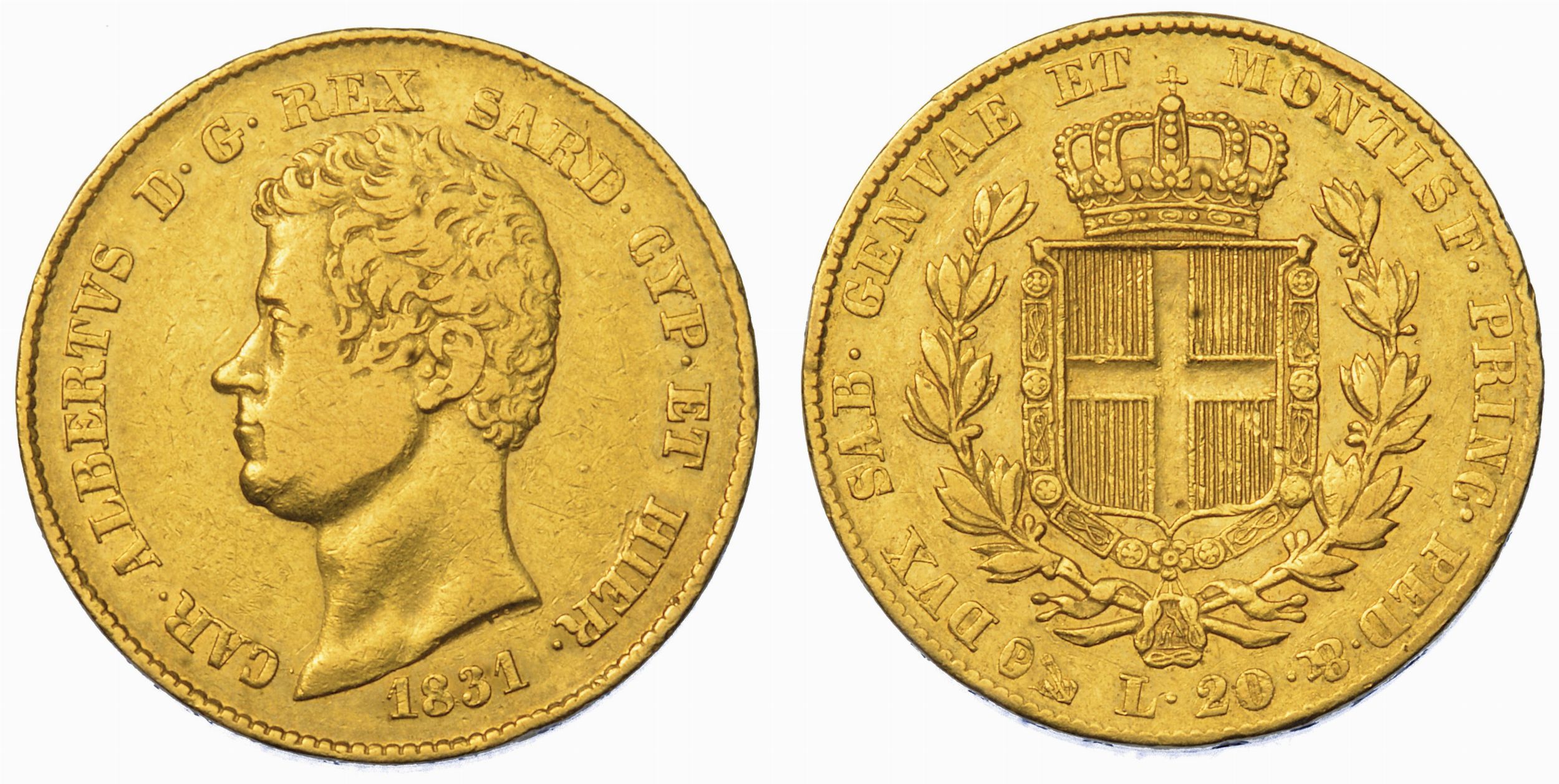 REGNO DI SARDEGNA. CARLO ALBERTO DI SAVOIA, 1831-1849. 20 Lire 1831. Genova.