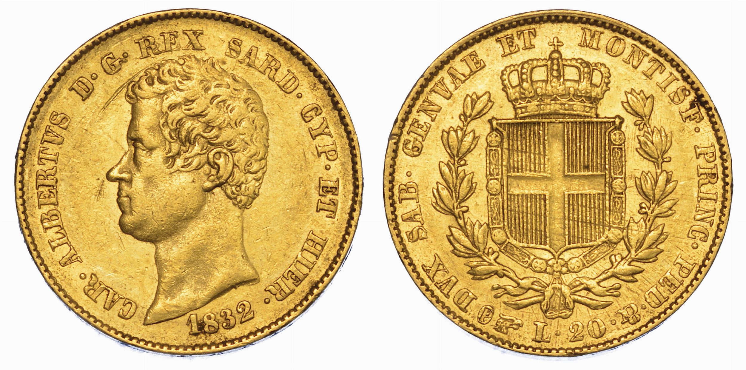 REGNO DI SARDEGNA. CARLO ALBERTO DI SAVOIA, 1831-1849. 20 Lire 1832. Torino.