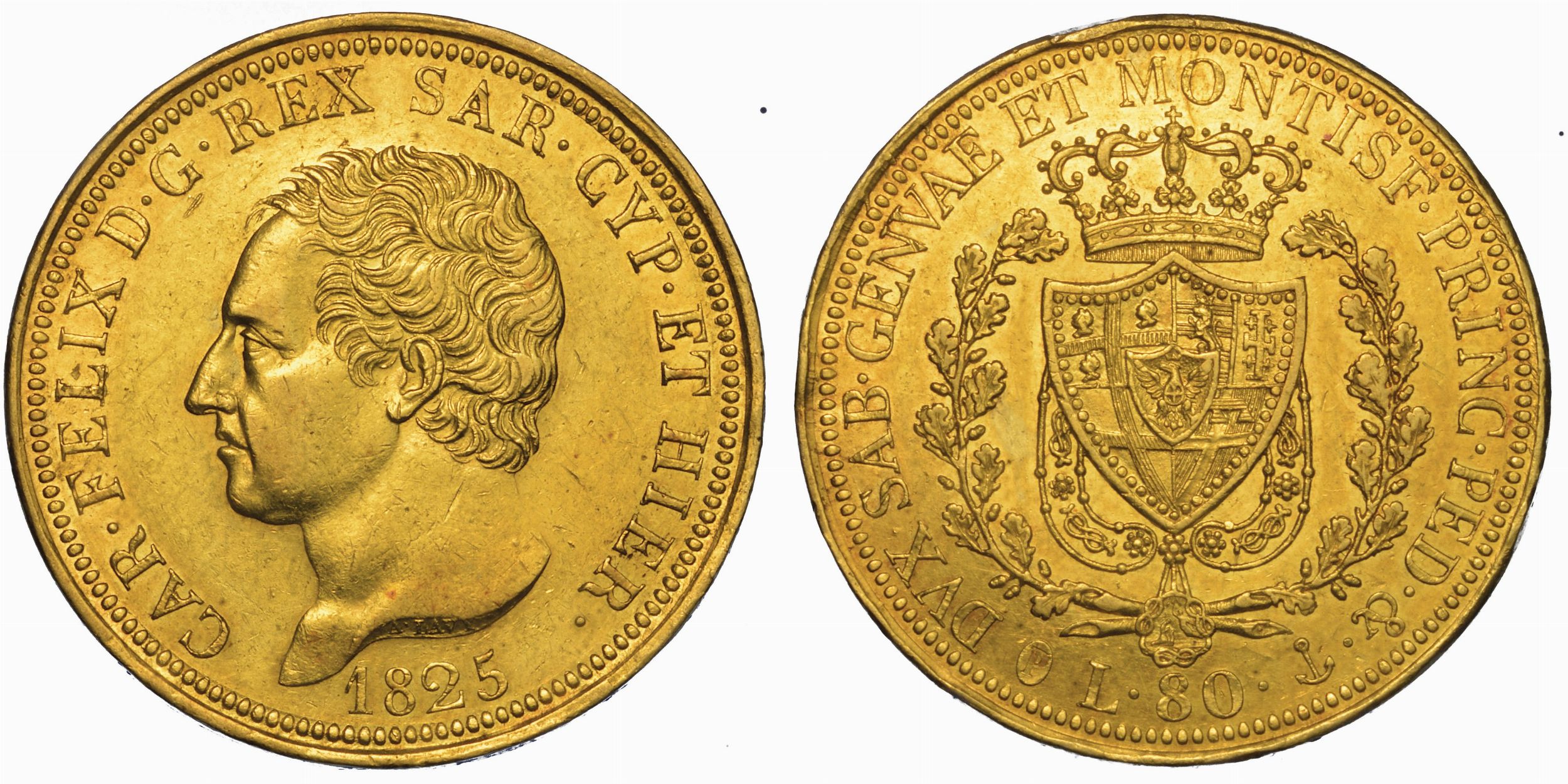 REGNO DI SARDEGNA. CARLO FELICE DI SAVOIA, 1821-1831. 80 Lire 1825. Genova.