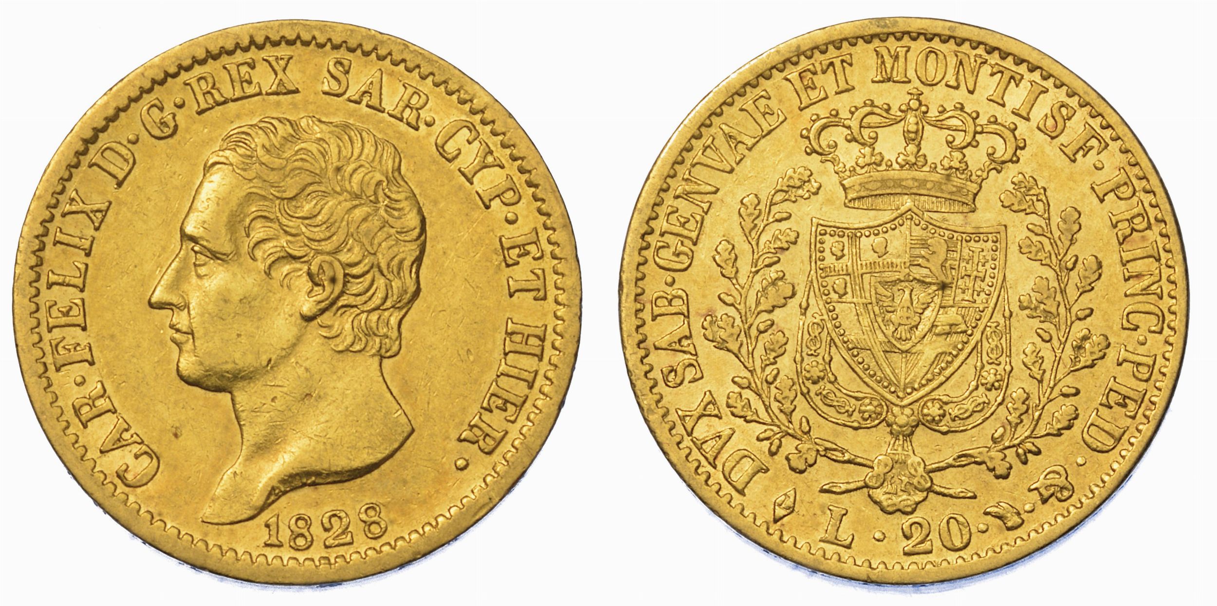 REGNO DI SARDEGNA. CARLO FELICE DI SAVOIA, 1821-1831. 20 Lire 1828. Torino.