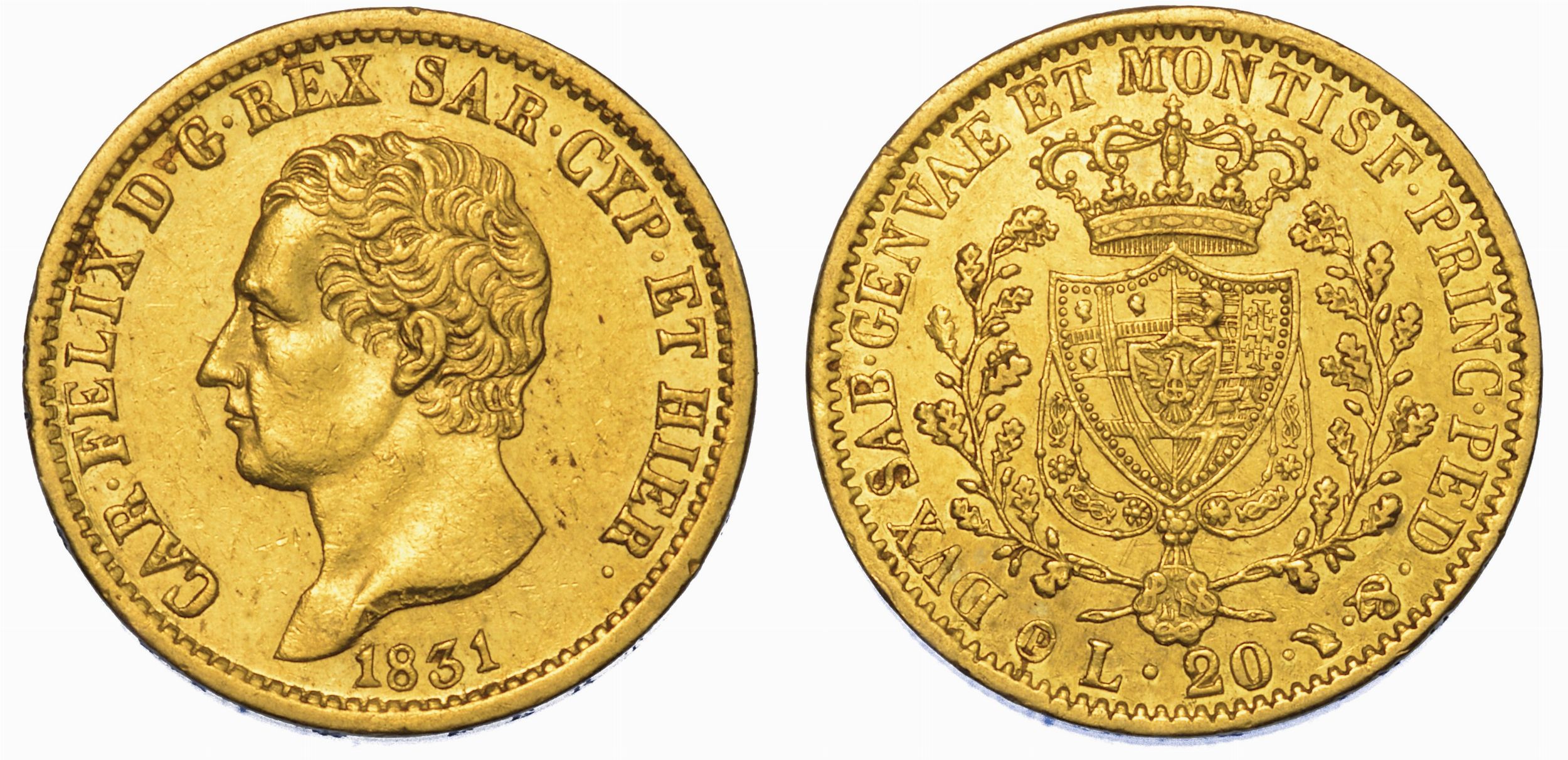 REGNO DI SARDEGNA. CARLO FELICE DI SAVOIA, 1821-1831. 20 Lire 1831. Torino.