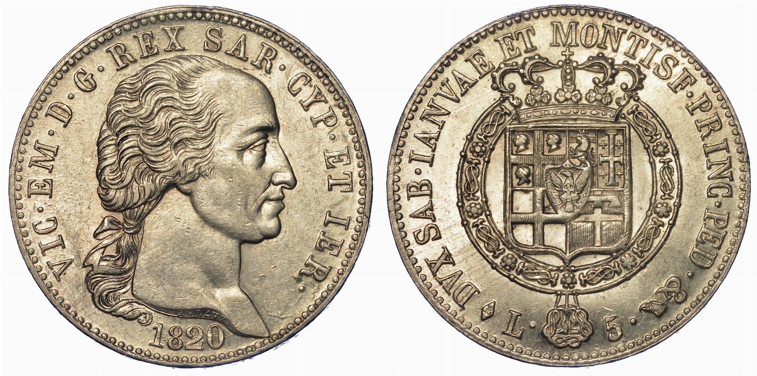 REGNO DI SARDEGNA. VITTORIO EMANUELE I DI SAVOIA, 1802-1821. 5 Lire 1820.