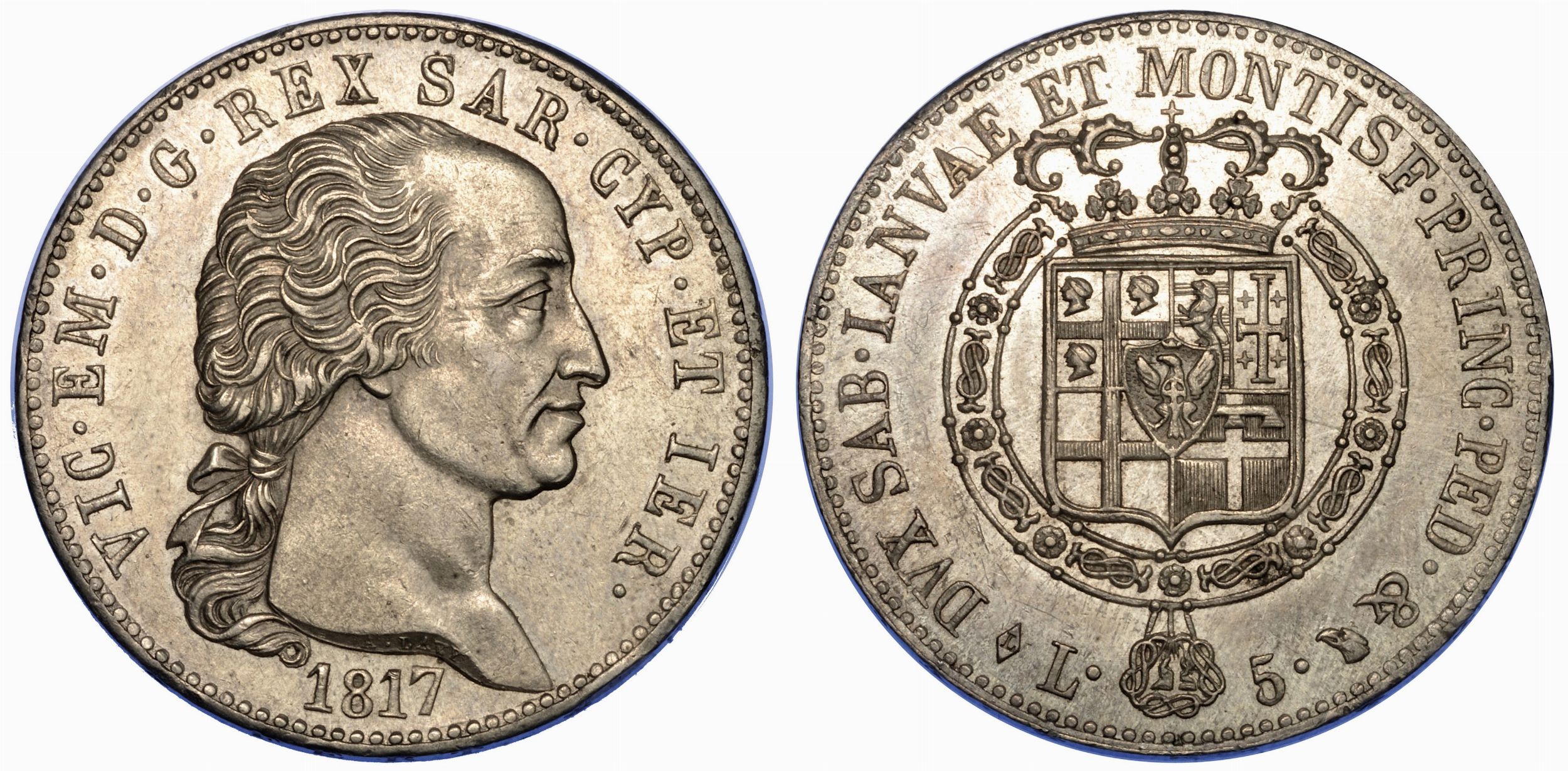 REGNO DI SARDEGNA. VITTORIO EMANUELE I DI SAVOIA, 1802-1821. 5 Lire 1817. Torino