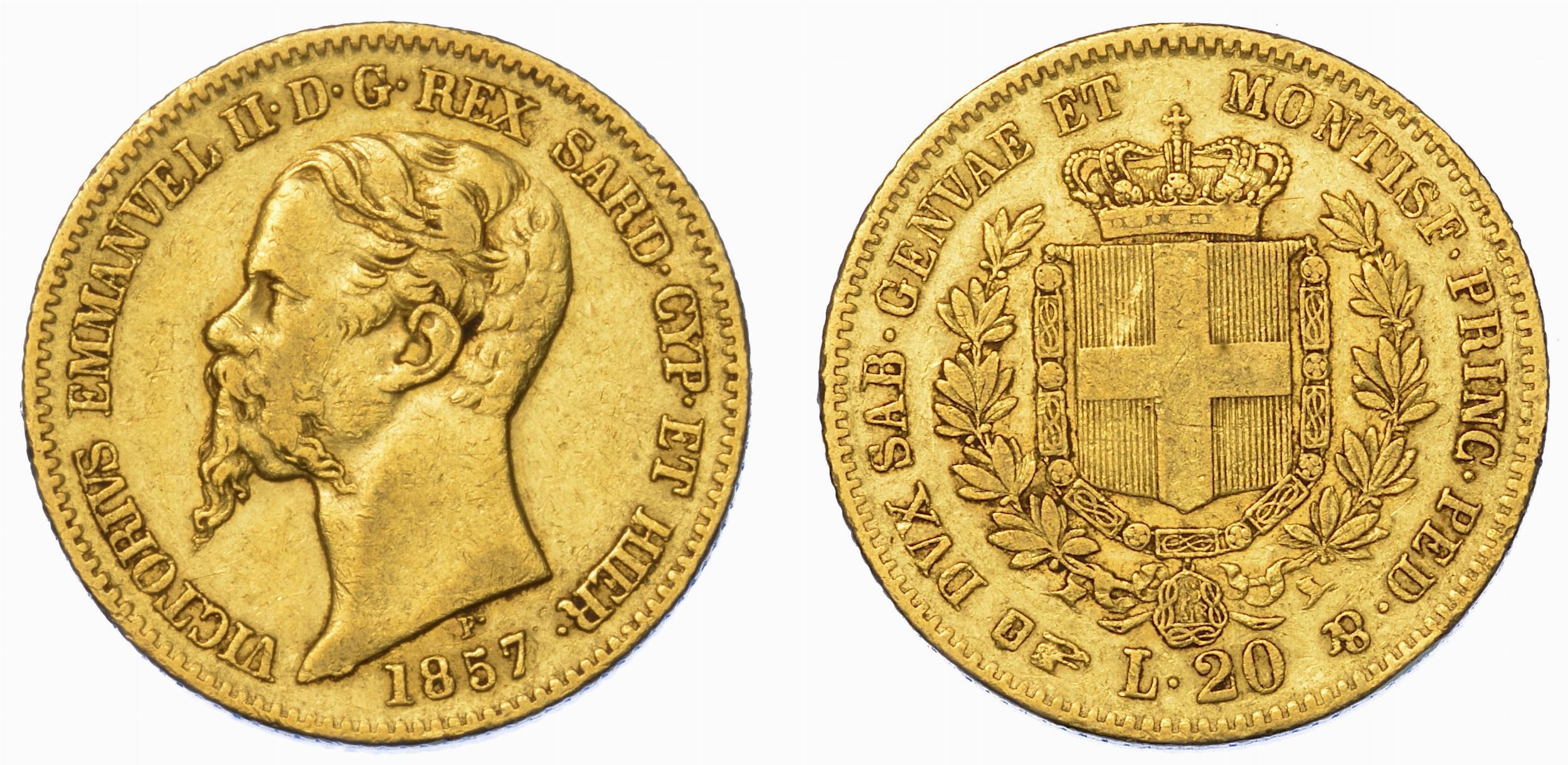 REGNO DI SARDEGNA. VITTORIO EMANUELE II DI SAVOIA, 1849-1861. 20 Lire 1857. Tori [..]