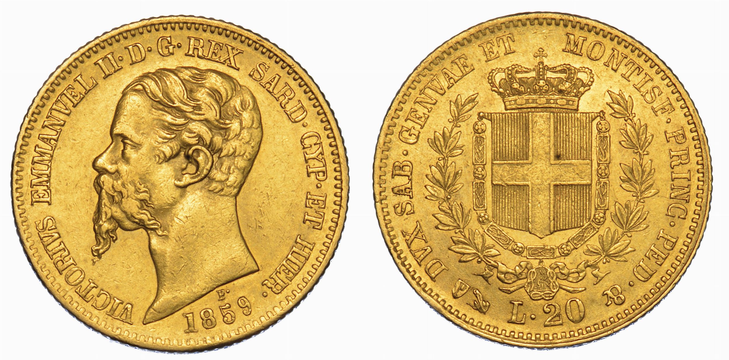 REGNO DI SARDEGNA. VITTORIO EMANUELE II DI SAVOIA, 1849-1861. 20 Lire 1859. Geno [..]