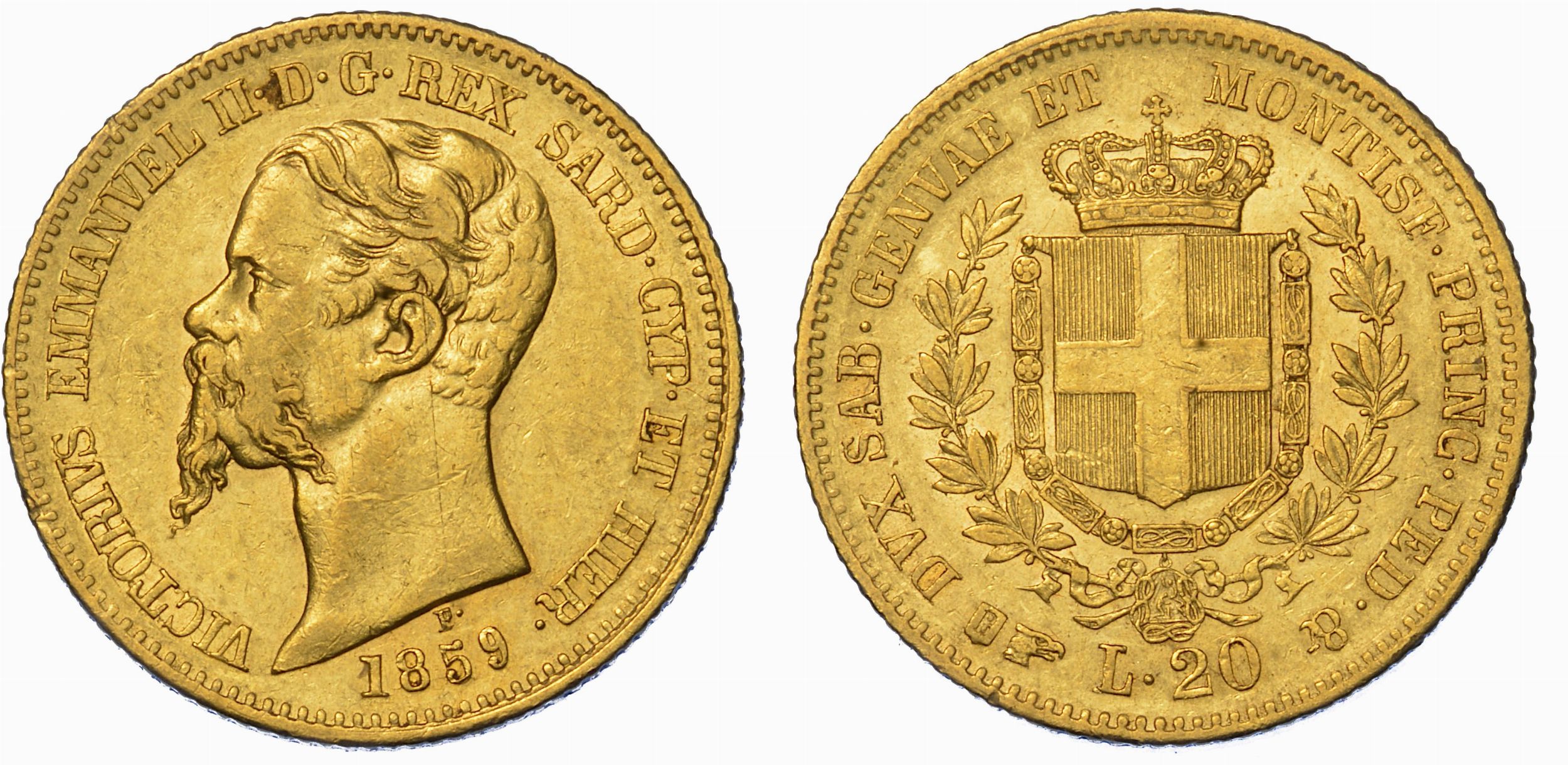REGNO DI SARDEGNA. VITTORIO EMANUELE II DI SAVOIA, 1849-1861. 20 Lire 1859. Tori [..]